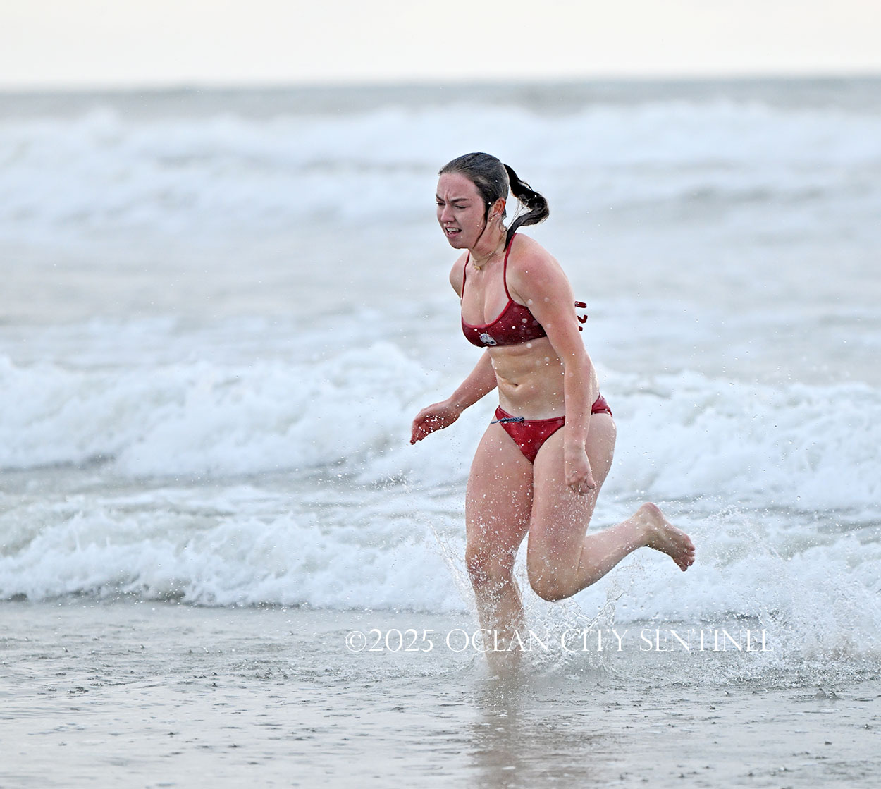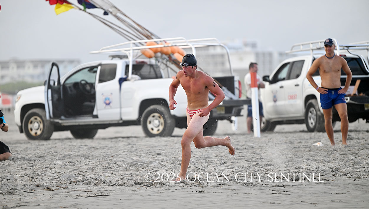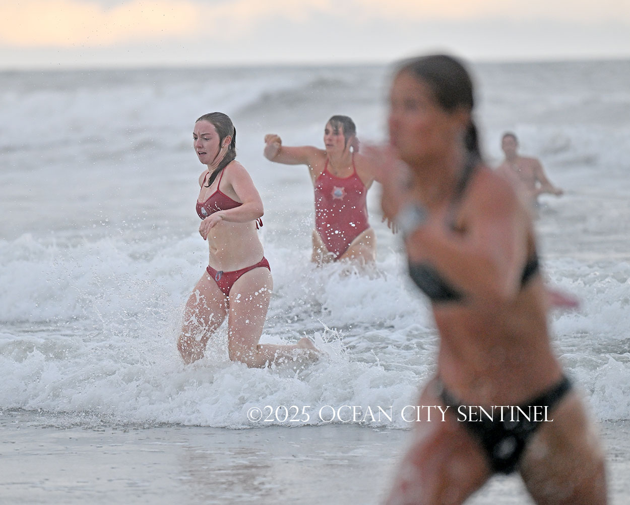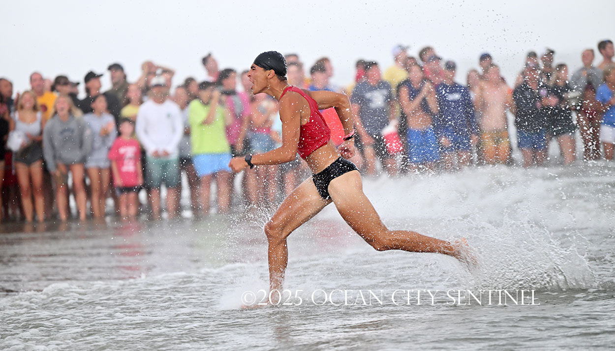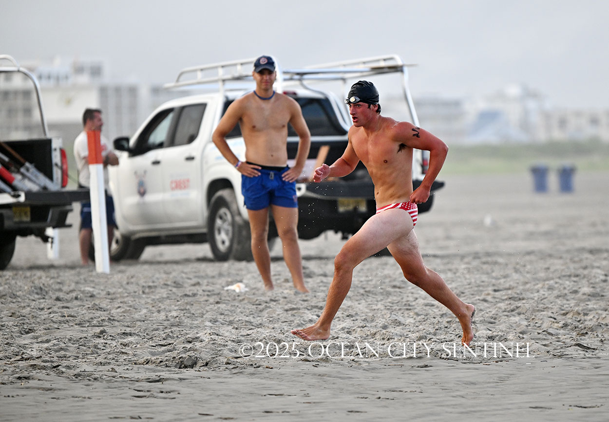 She added the conditions were rough for the dash relay, in which the guards run over the sand and into the surf, touch a marker and then race back again. There was a “really strong current ripping north, so it was learning how to angle, get to the correct buoy, come right back in, and make sure you’re on target,” Frederick said.