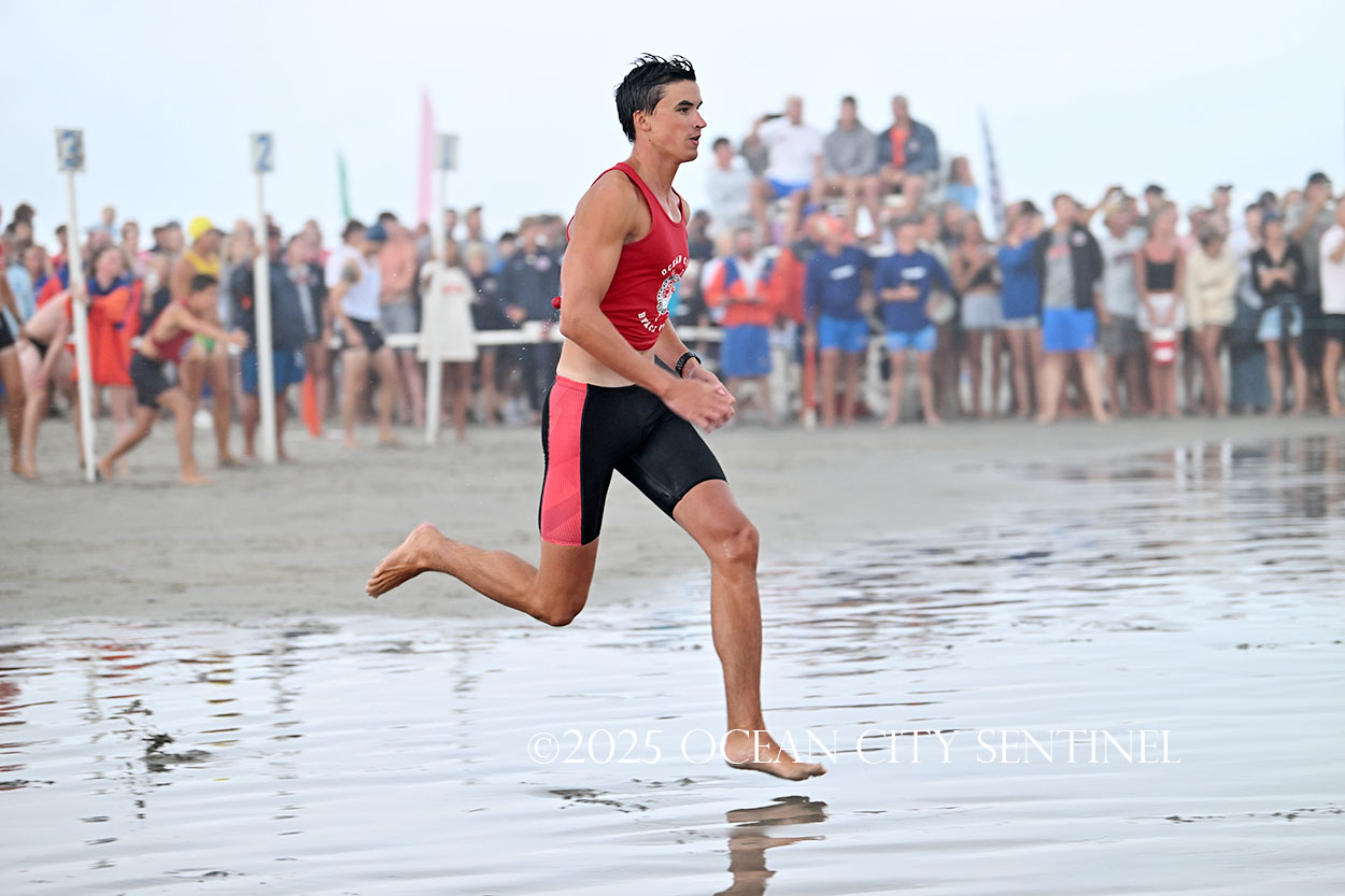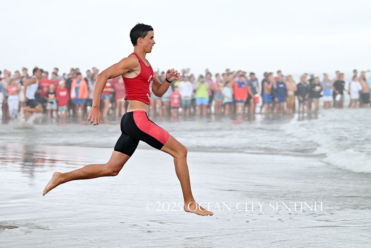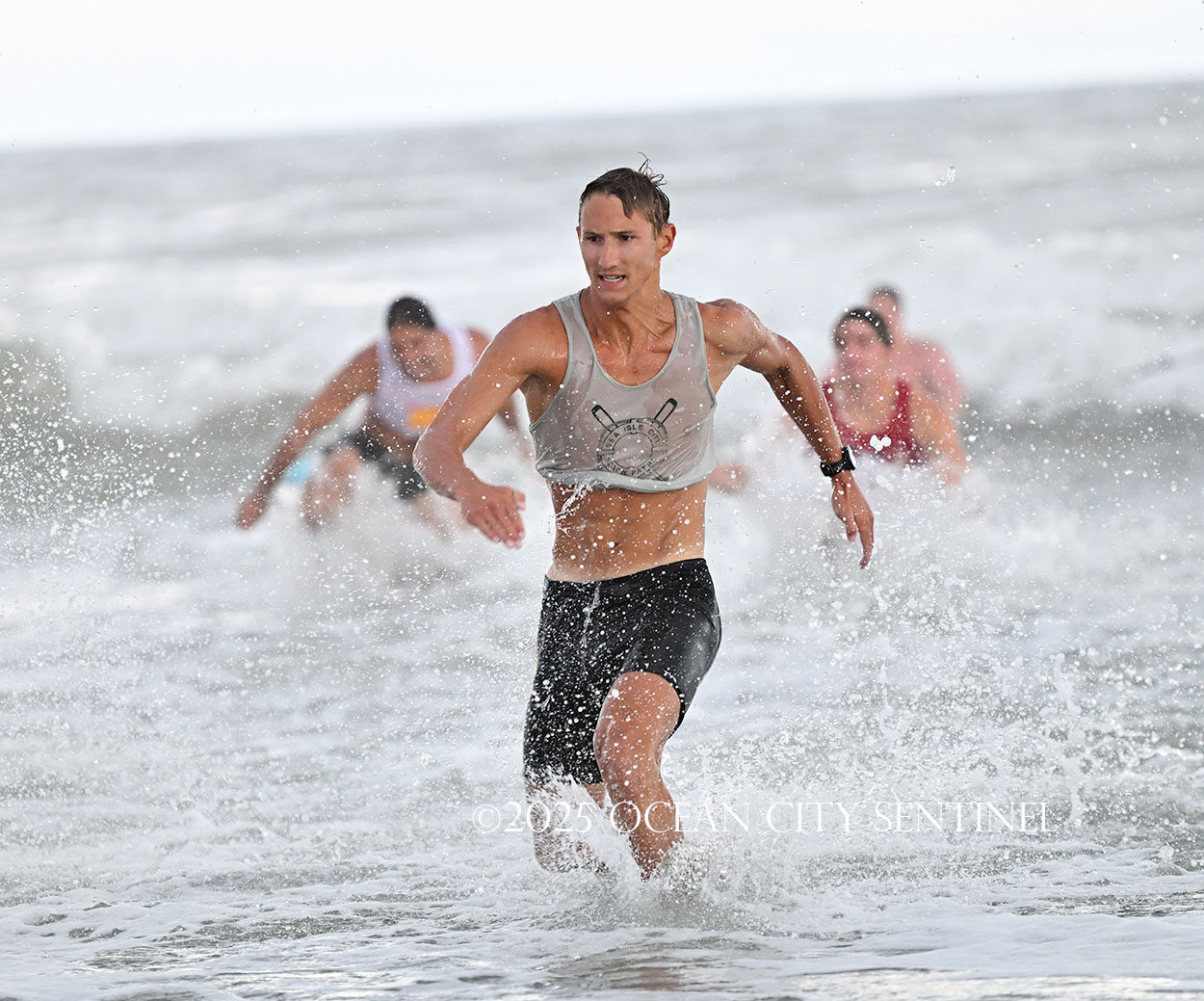 The men’s box course paddle was a dead heat coming to shore between Wildwood’s John Livingstone and Ocean City’s Chase Ritter, but Livingstone had the legs for the long run to the finish on the beach for first place. Eddie Fucci of the Cape May Beach Patrol was third, North Wildwood’s Chase McCray fourth and Sea Isle City Beach Patrol guard Dusty Laricks was fifth.