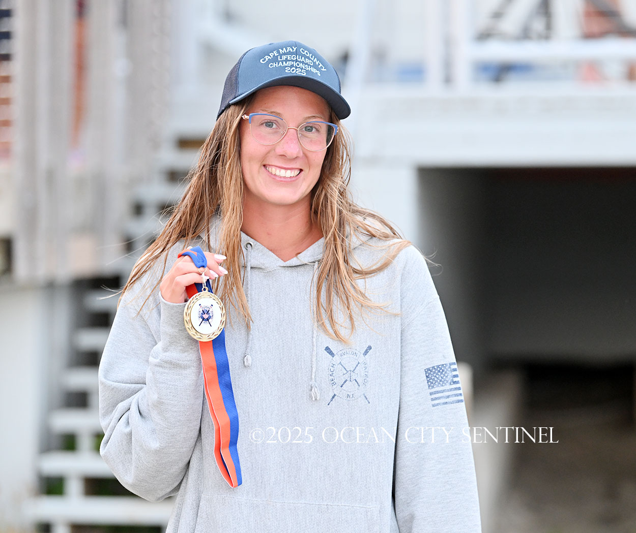 Avalon’s Becca Cubbler, a dominant force in women’s lifeguard swim competitions in the past few years, repeated her victory to give the AVP 18 points through the first four events. Ocean City’s Rhylee Cornell was second, Mary Kate Leonard of the Sea Isle City Beach Patrol third, Upper Township’s Ava Smith fourth and Stone Harbor’s Reese Hetzer fifth.