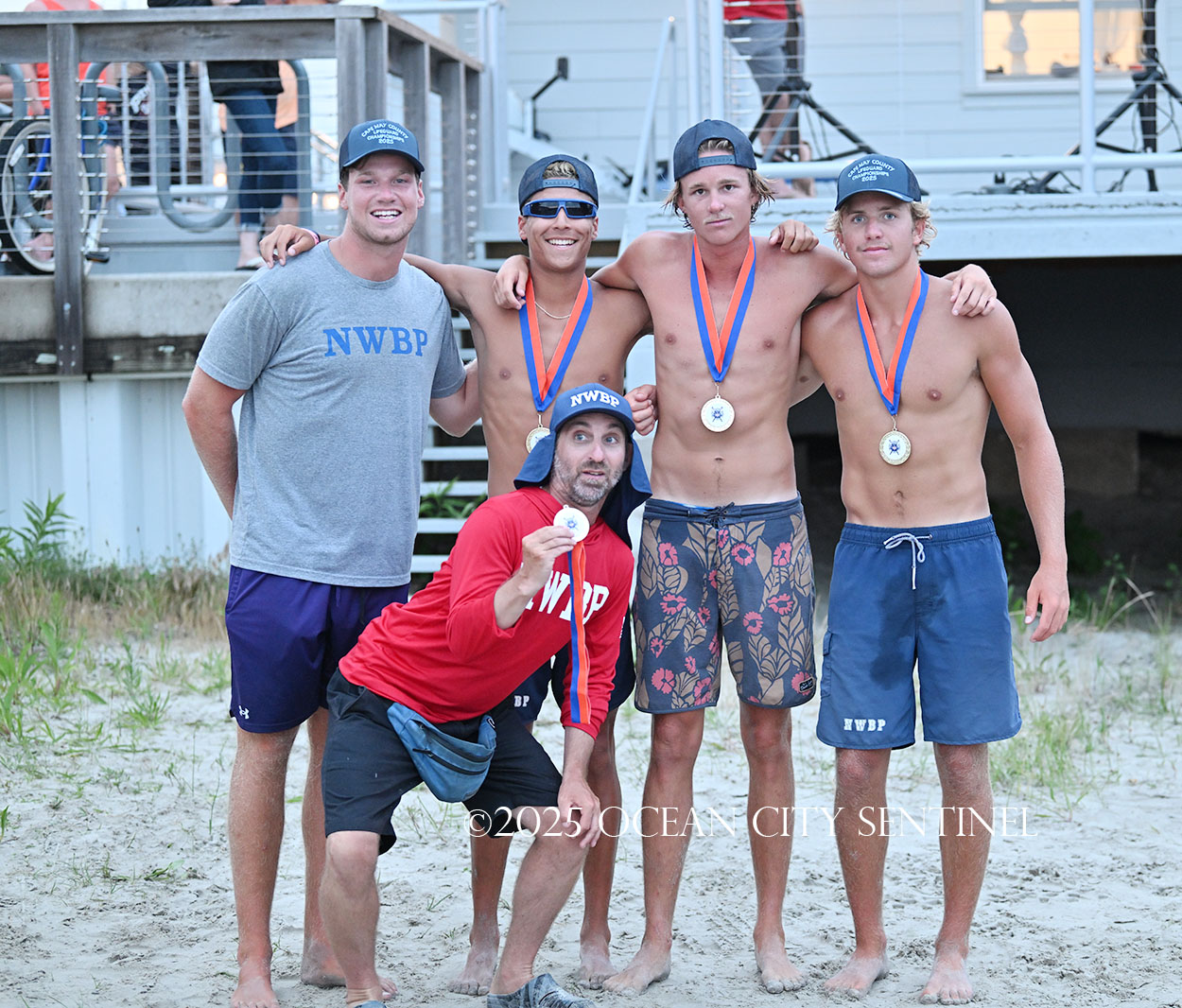 North Wildwood’s Patrick Rosenello, Seamus McCain, Chase McCray and Hunter Bostwick won the men’s surf dash. Wildwood Crest’s Roman Voinea, Klecko, Mike Reed and Gabe McDevitt secured the team’s title with their second-place finish.