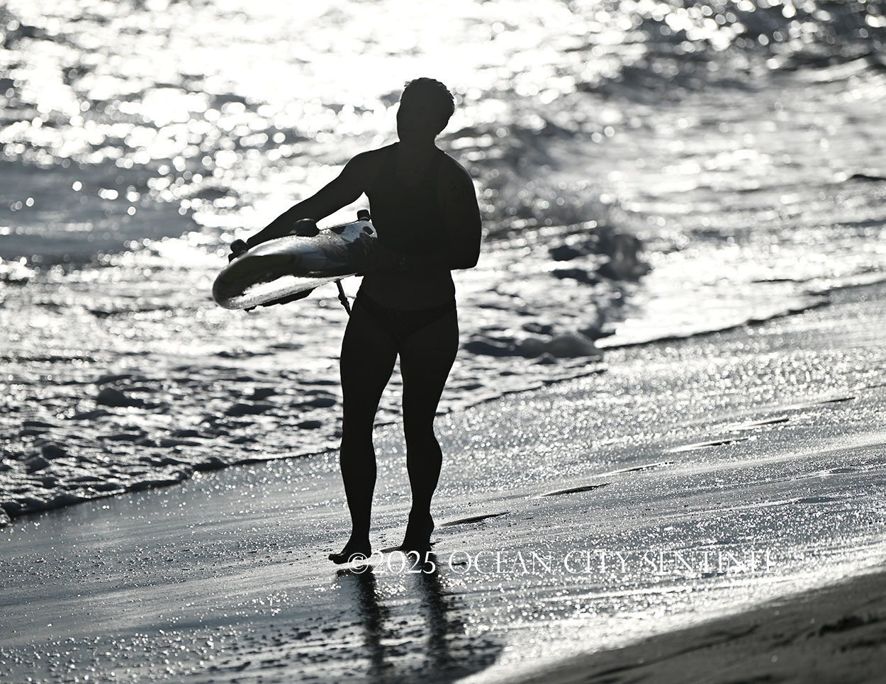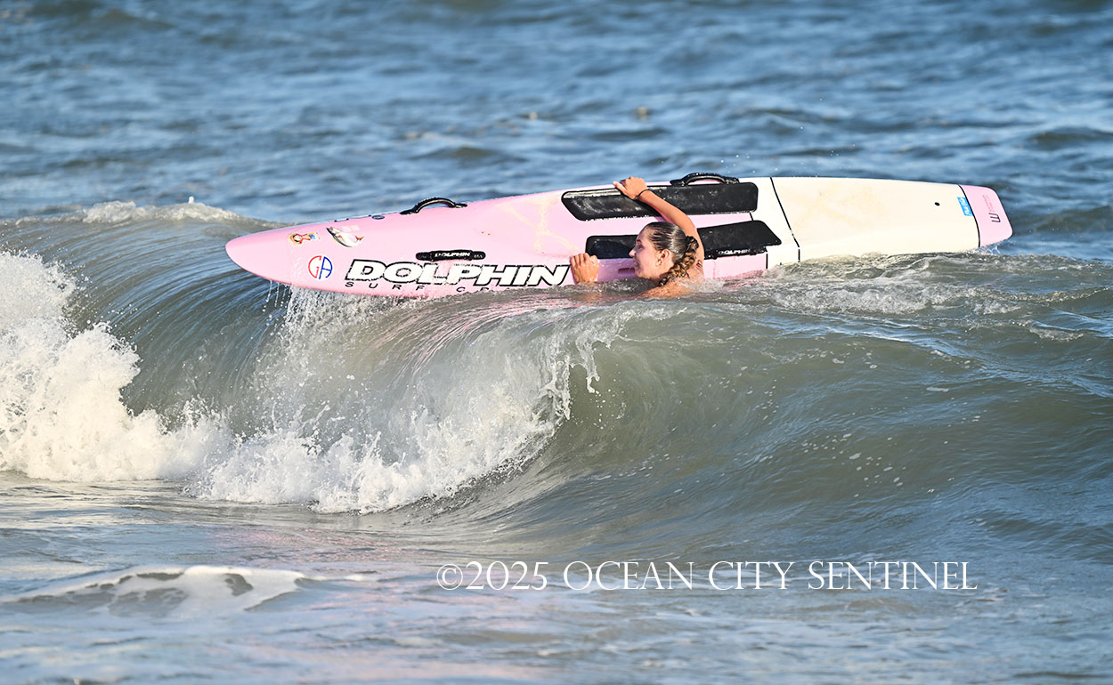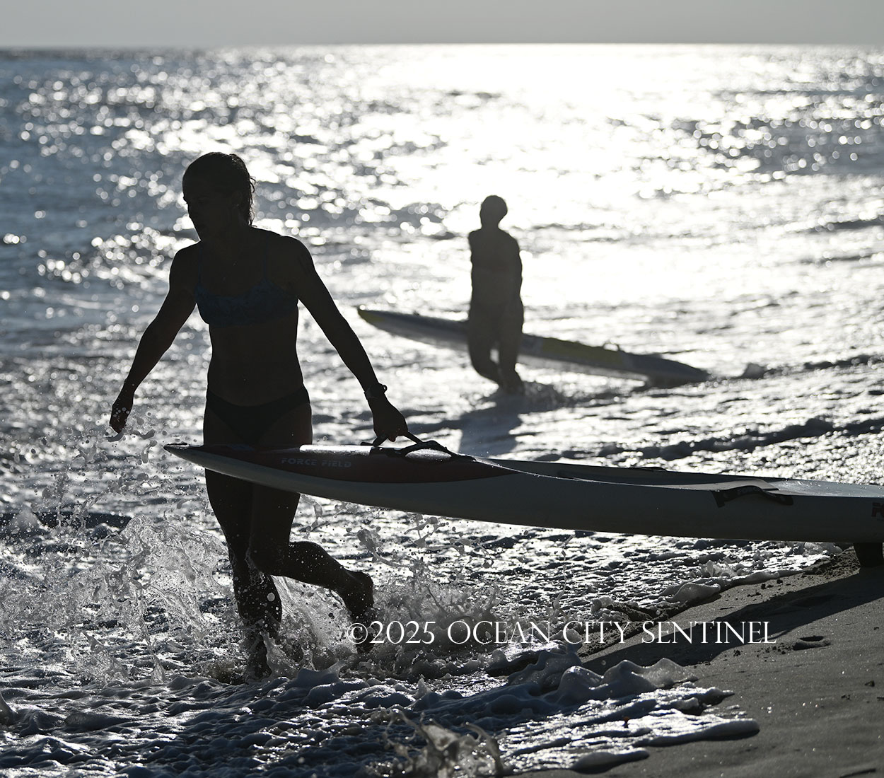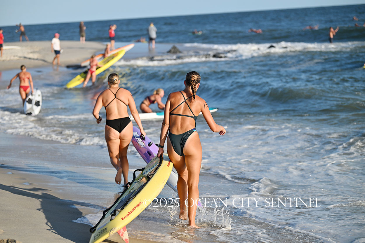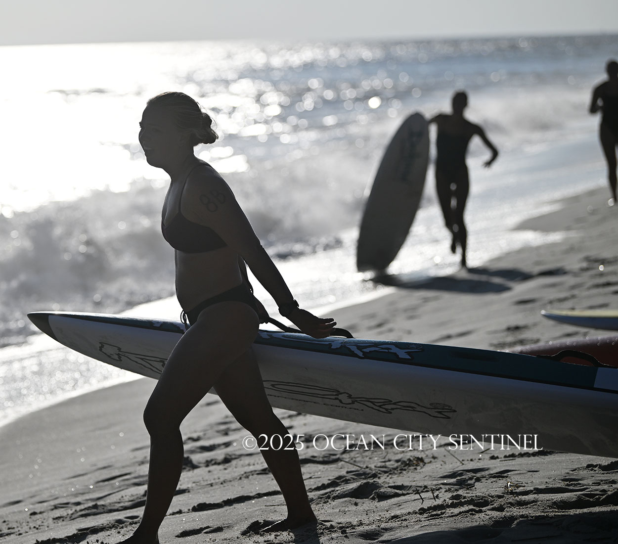 The competitors have to run 1.25 miles on soft sand. The distance isn’t a problem. The soft sand is a brutal drain on legs. Then they pick up paddleboards and race 1,000 meters. The currents and tides of Delaware Bay do their best to thwart the paddlers’ navigation and throw them off course.