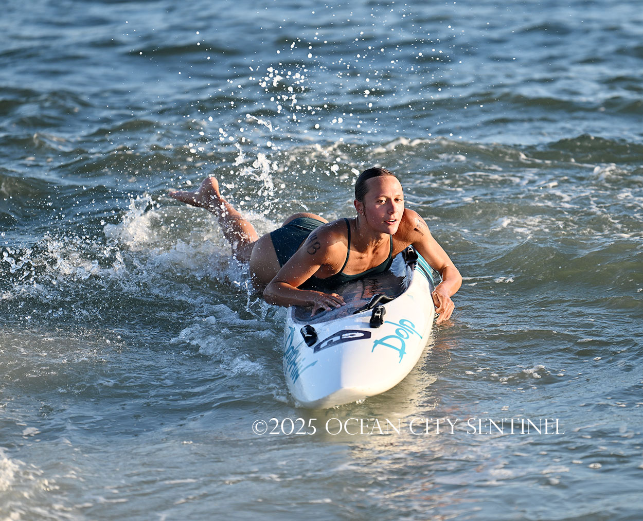 Kacie Hymers, 26, who has been on the Cape May Point Beach Patrol off and on for six years, believes the challenge is an “awesome event and I feel like it’s one of a kind, you can’t find this anywhere else.