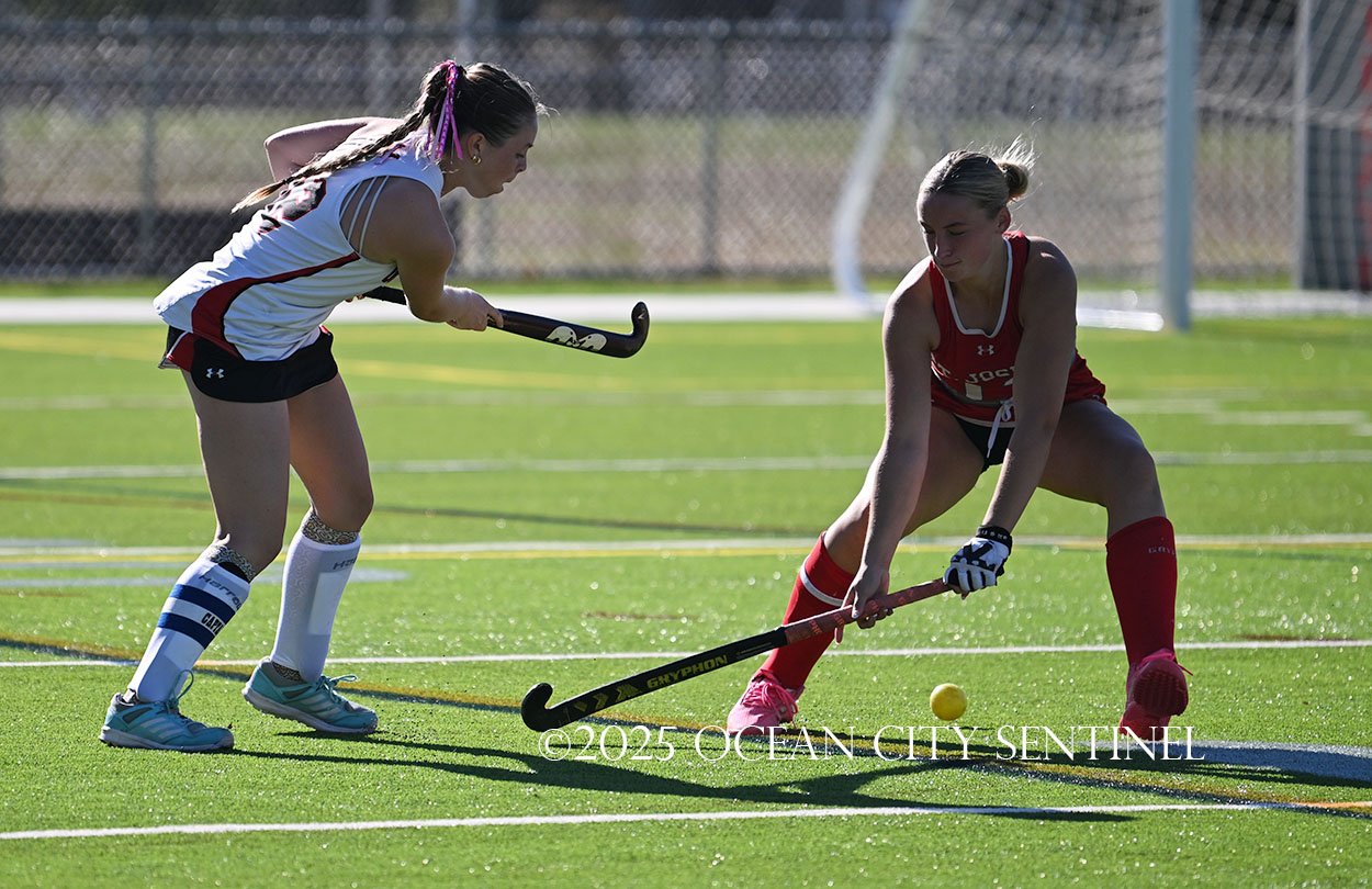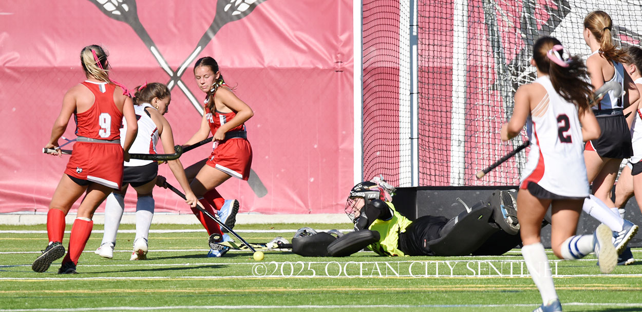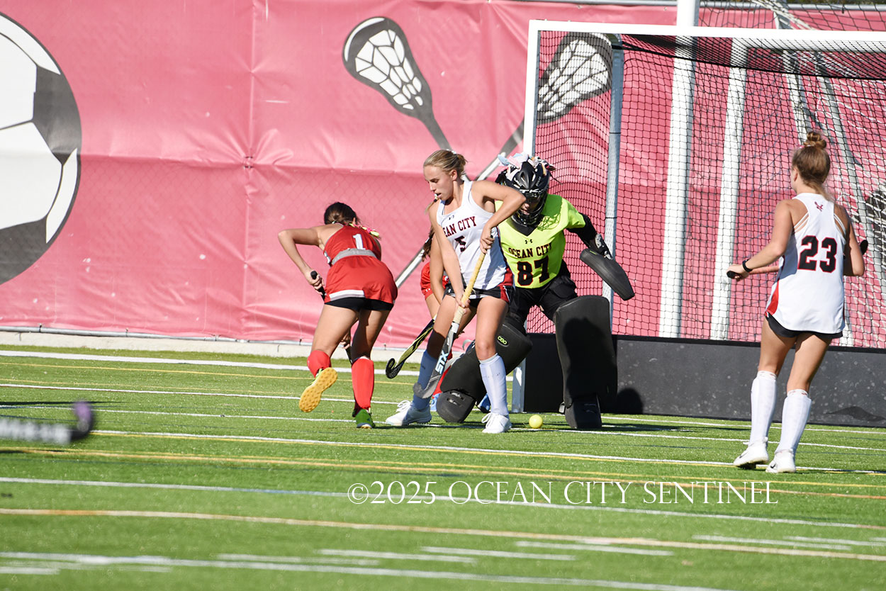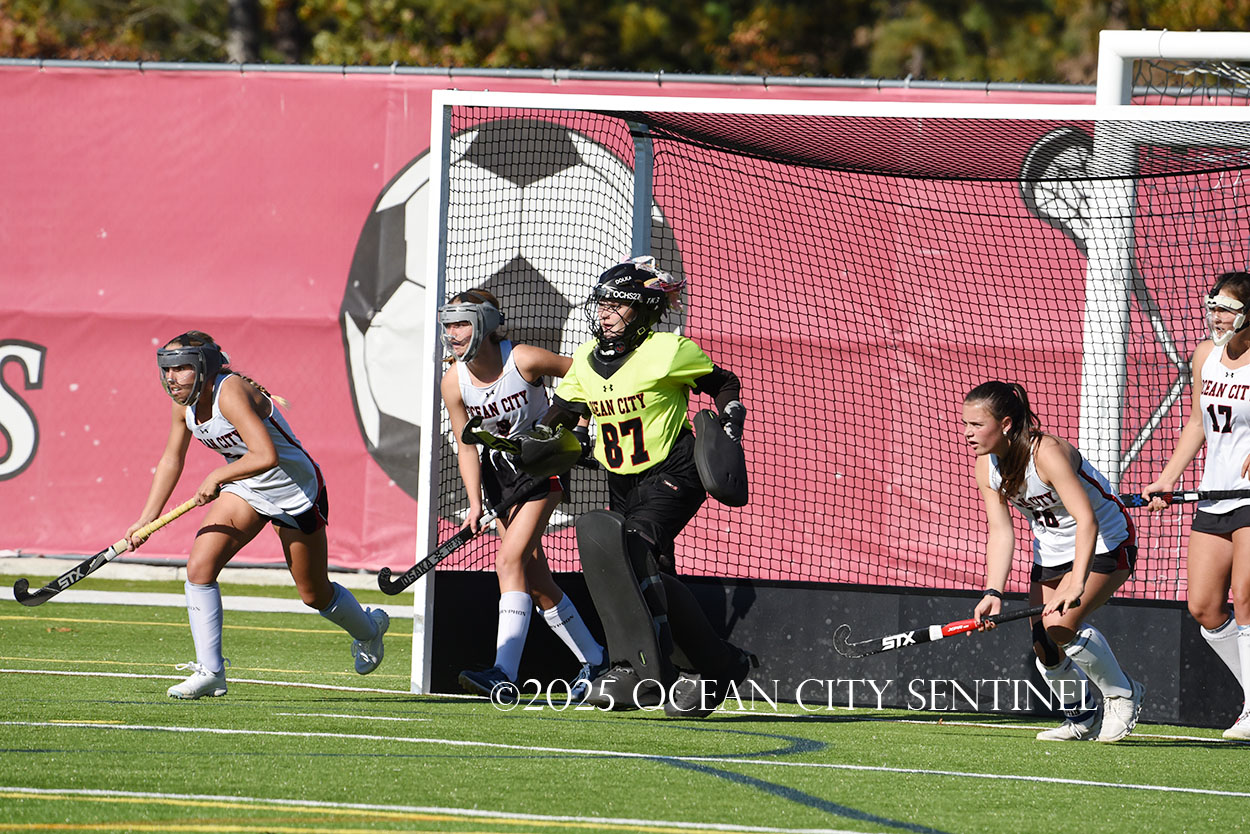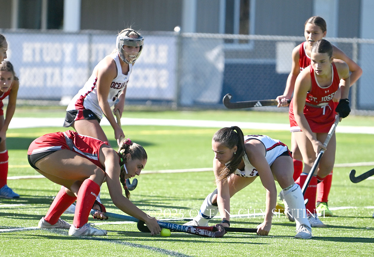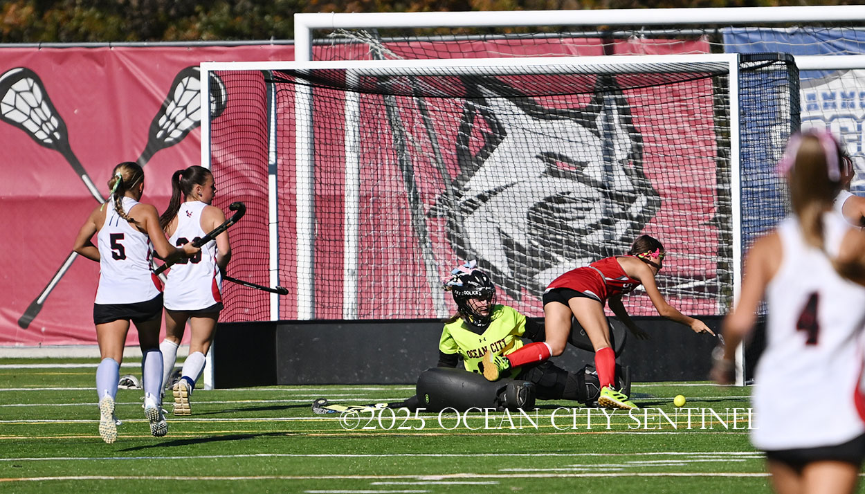 The two teams were tied 1-1 until near the end of the first half after St. Joe’s Stella Devlin scored and Ocean City’s Casey Adamson tied things up. With time running out in the half, Nina Aponte, who provided the assist on Devlin’s score, made it 2-1 off a corner play.