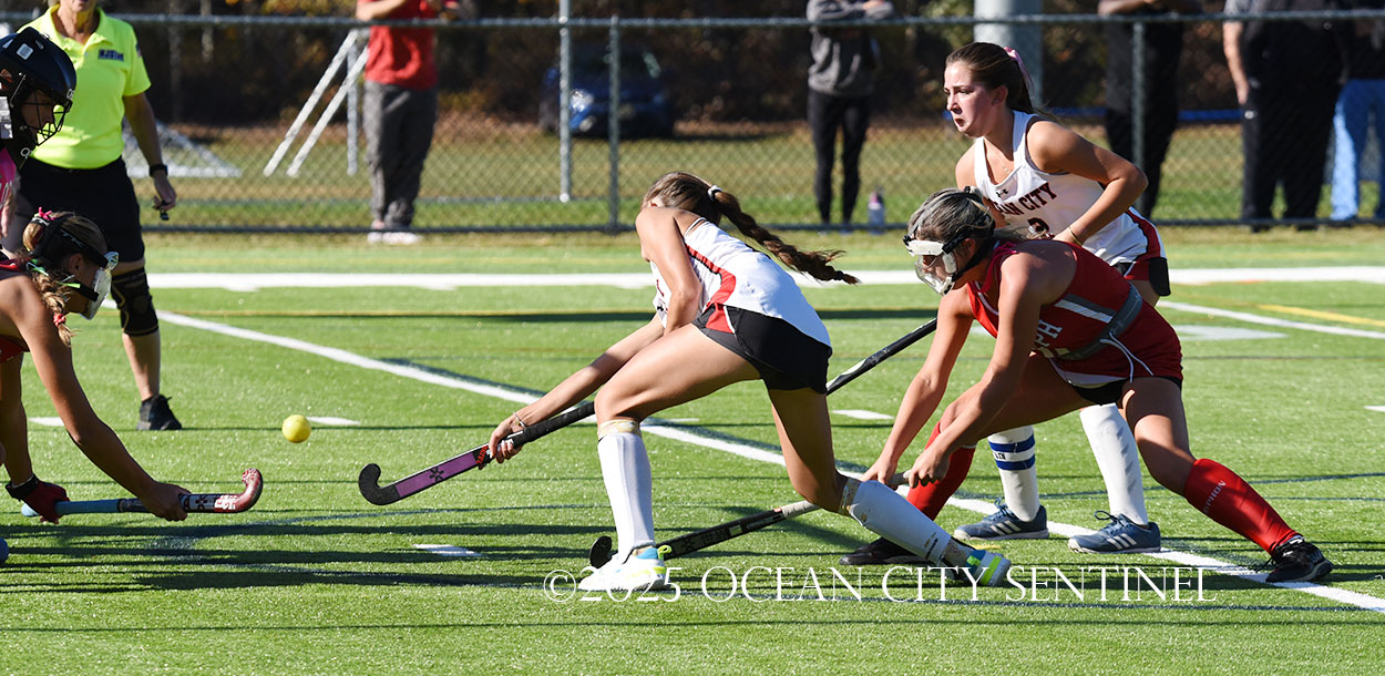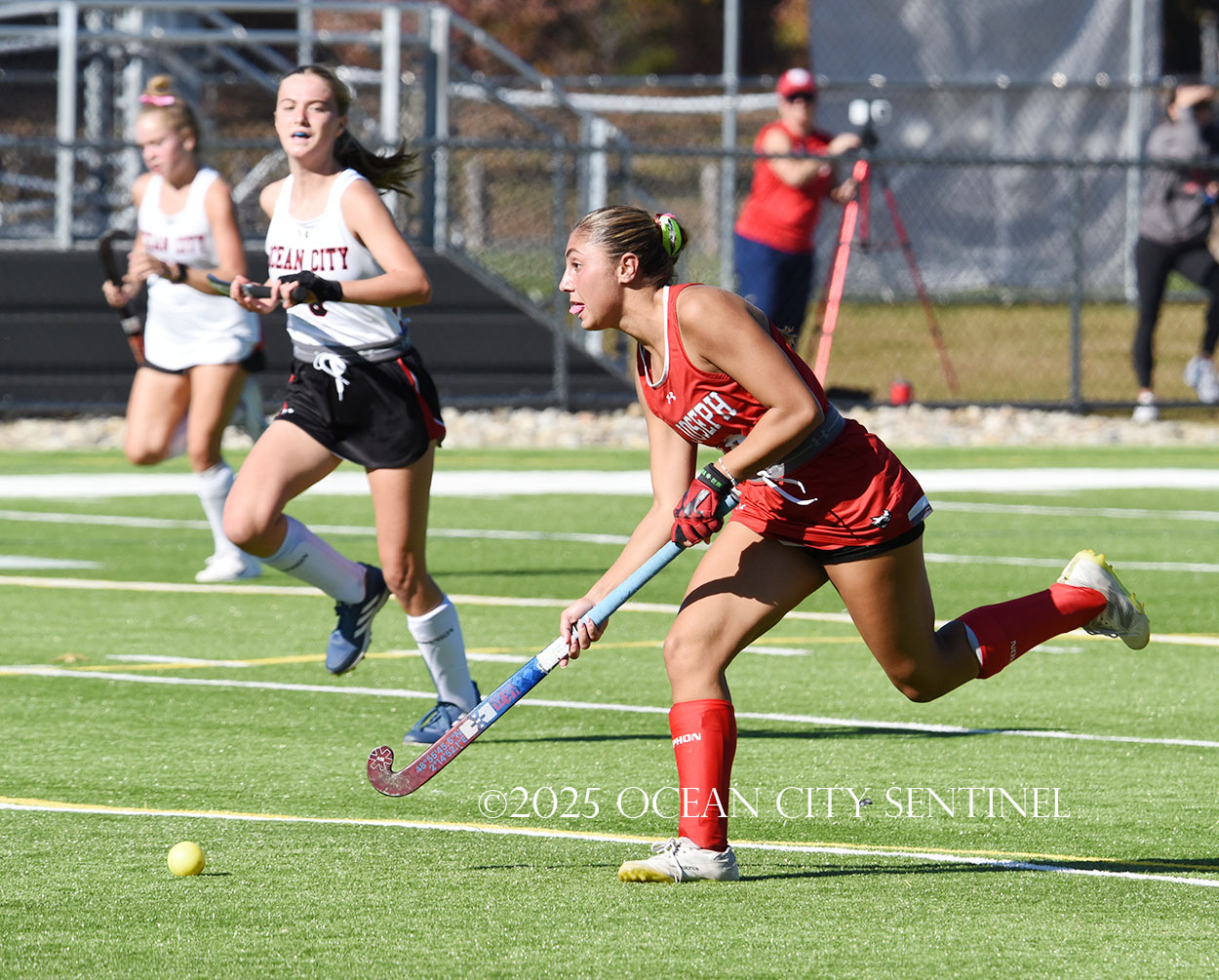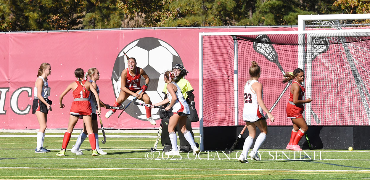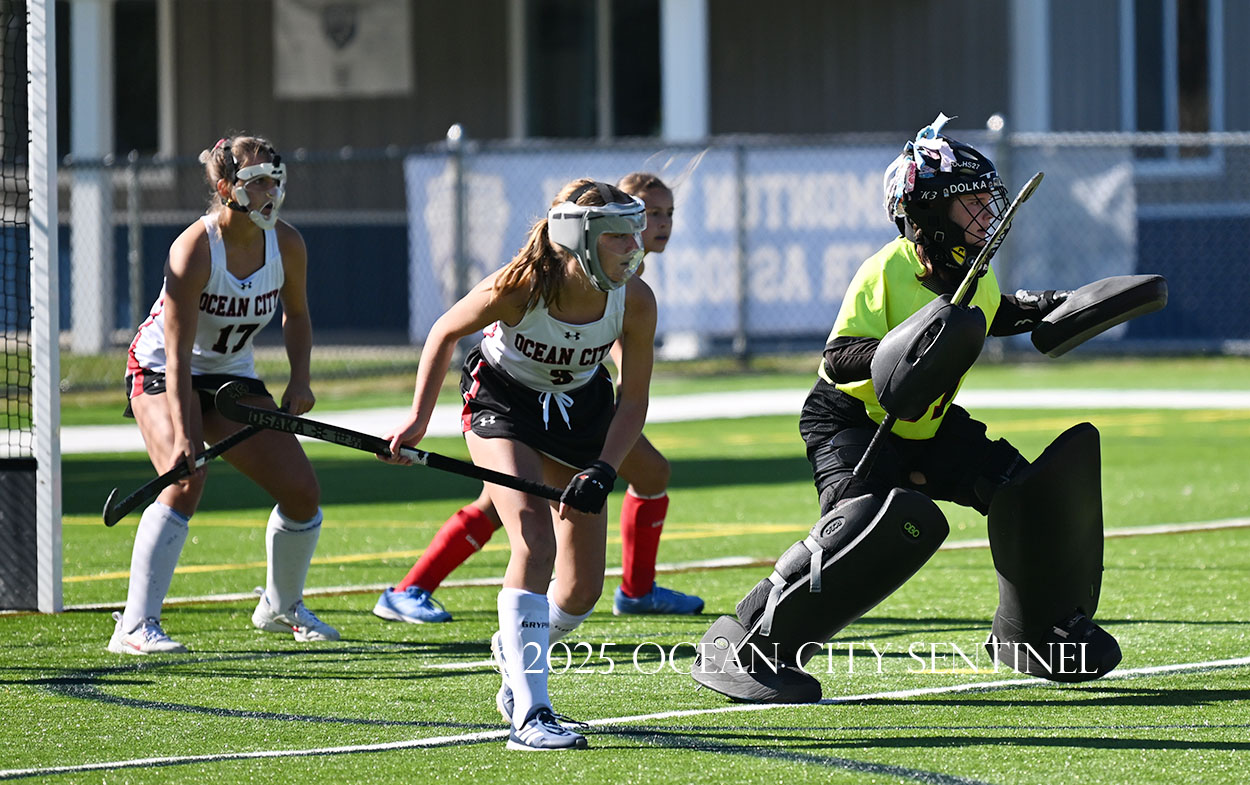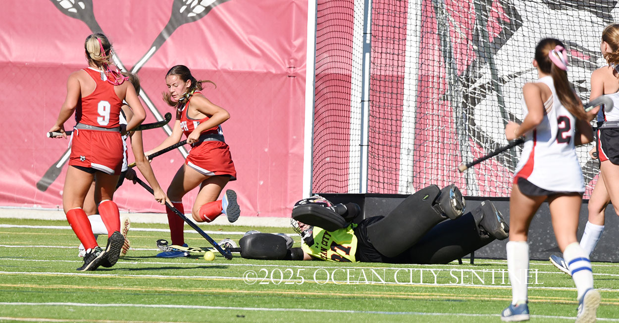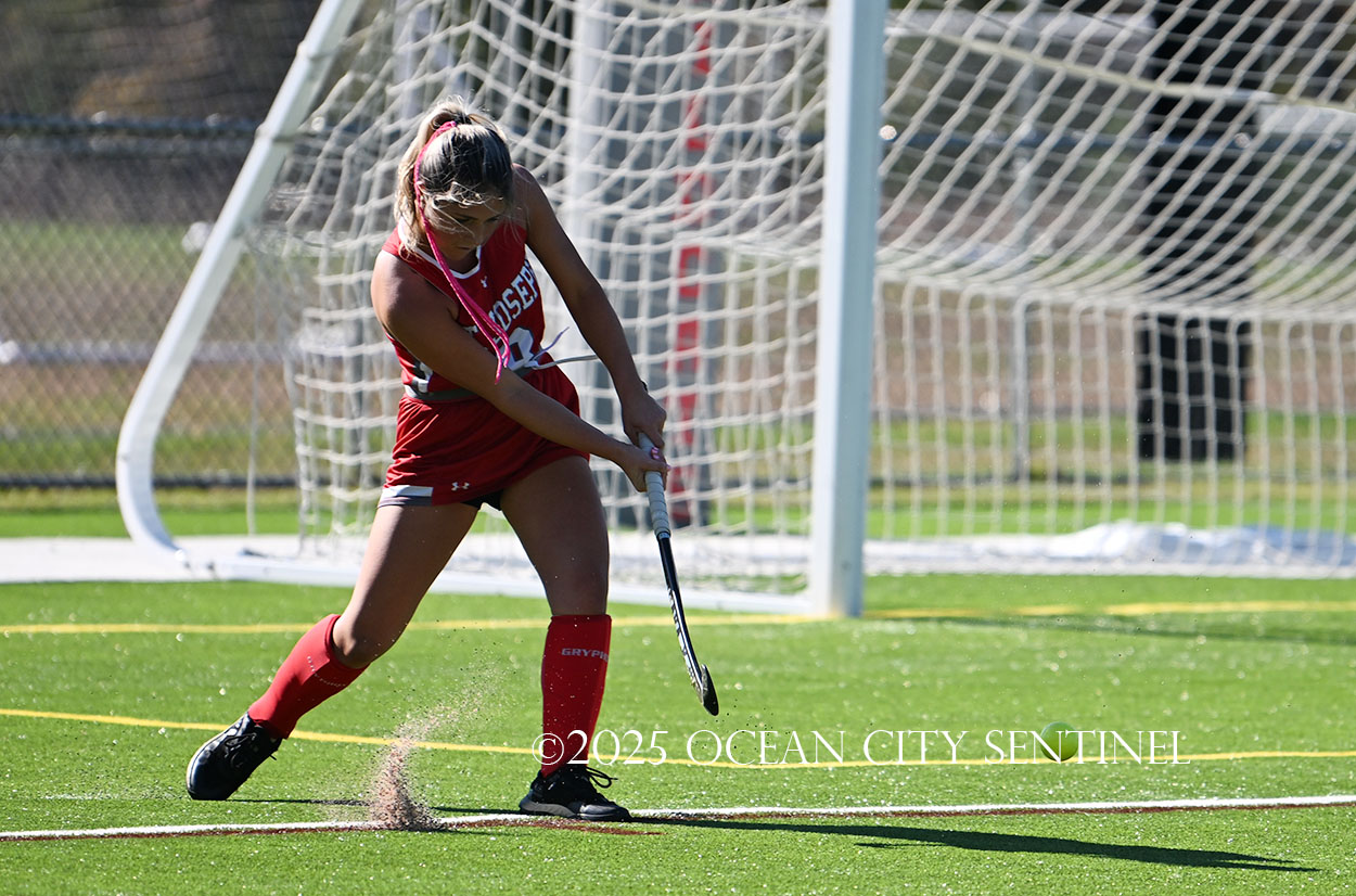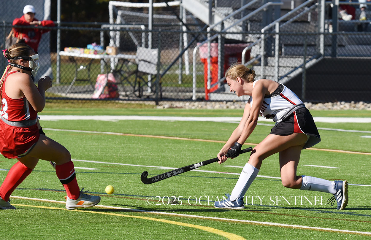 The two teams were tied 1-1 until near the end of the first half after St. Joe’s Stella Devlin scored and Ocean City’s Casey Adamson tied things up. With time running out in the half, Nina Aponte, who provided the assist on Devlin’s score, made it 2-1 off a corner play.