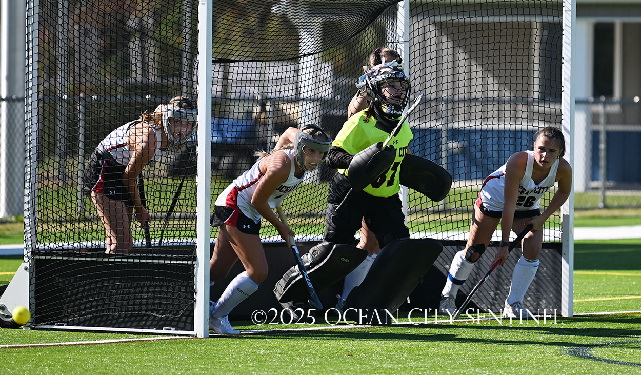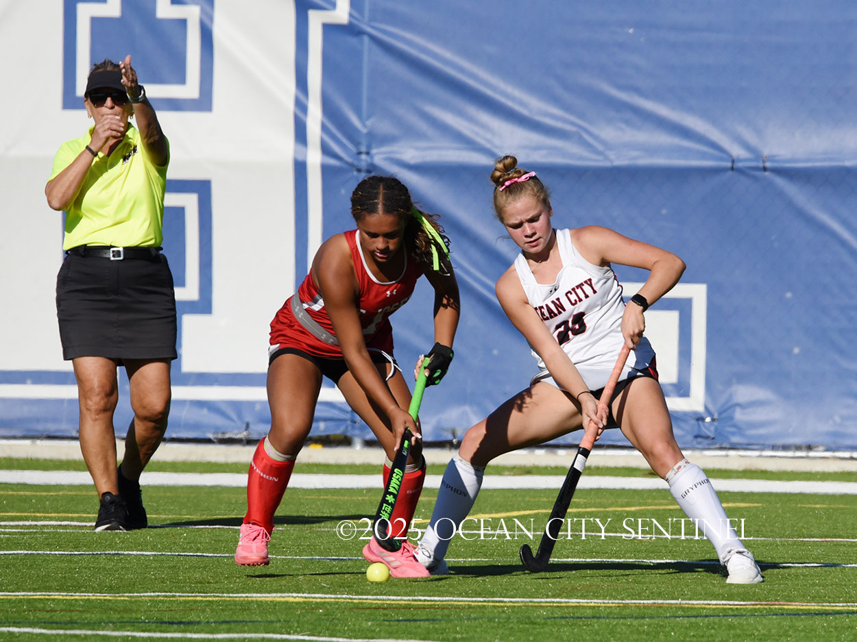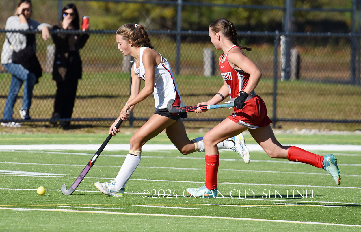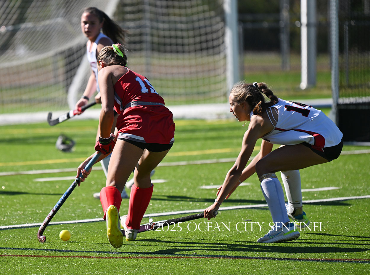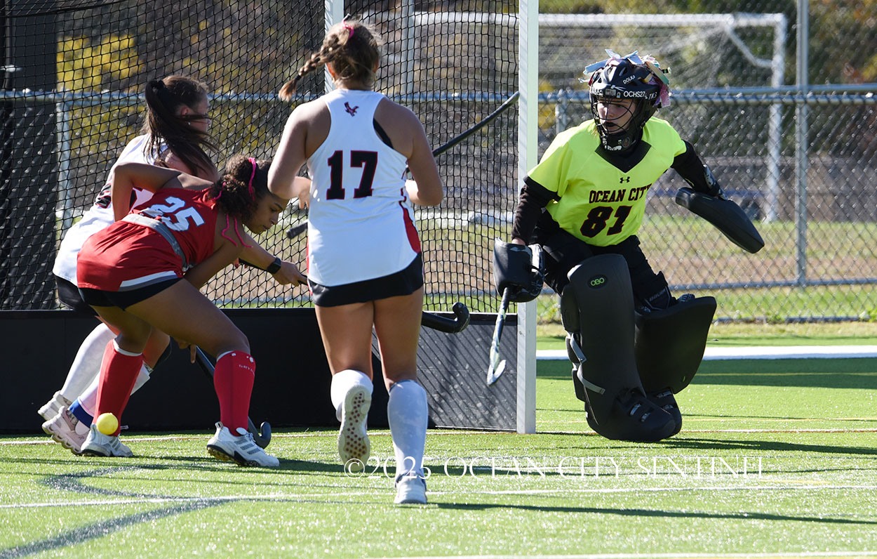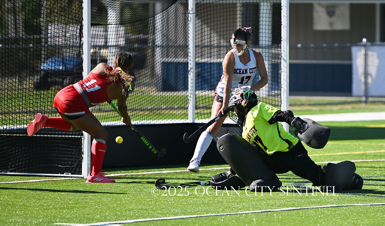 The two teams were tied 1-1 until near the end of the first half after St. Joe’s Stella Devlin scored and Ocean City’s Casey Adamson tied things up. With time running out in the half, Nina Aponte, who provided the assist on Devlin’s score, made it 2-1 off a corner play.