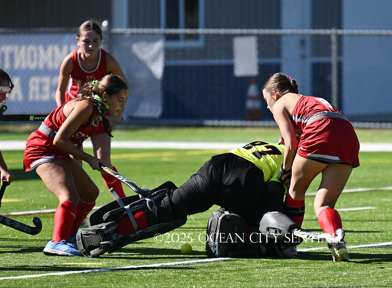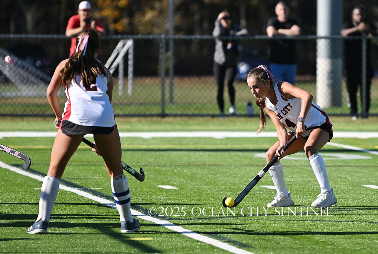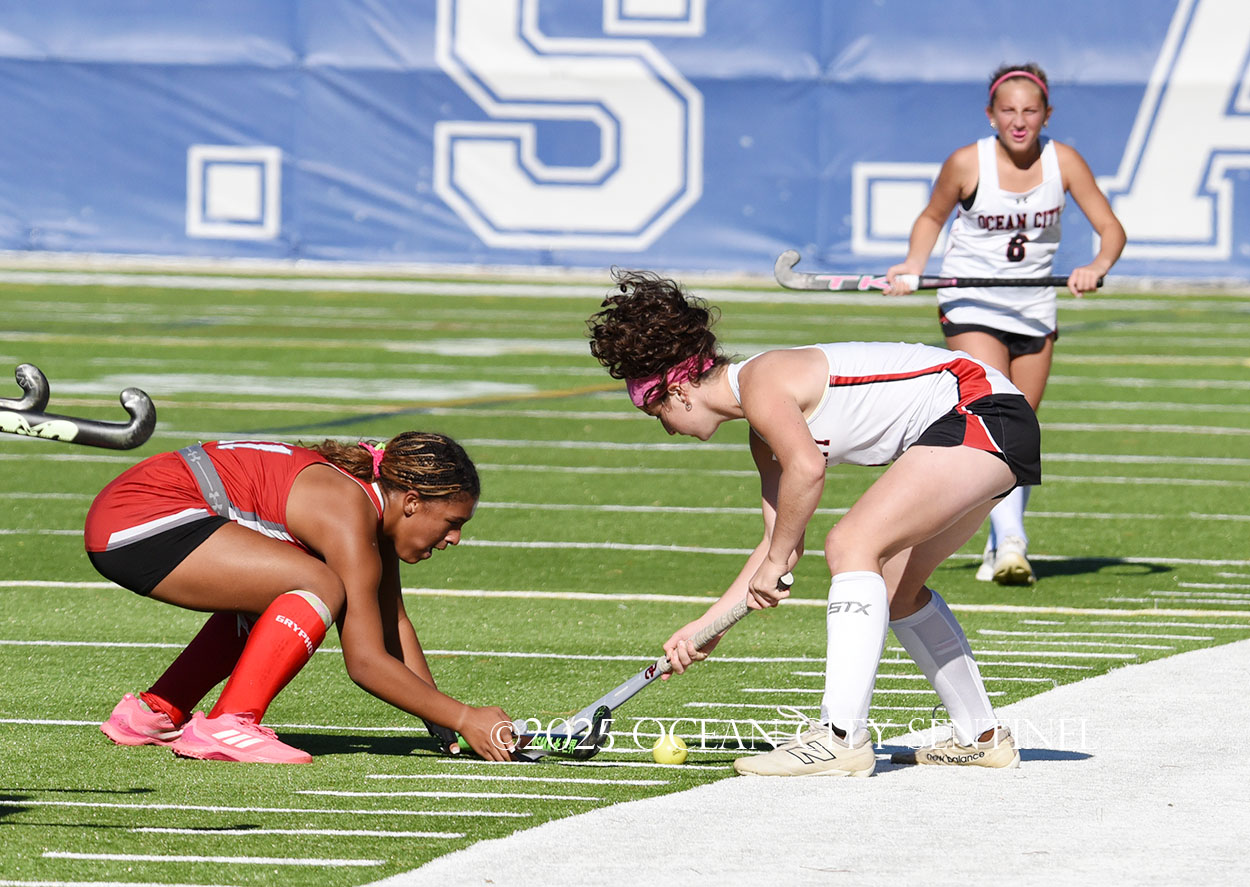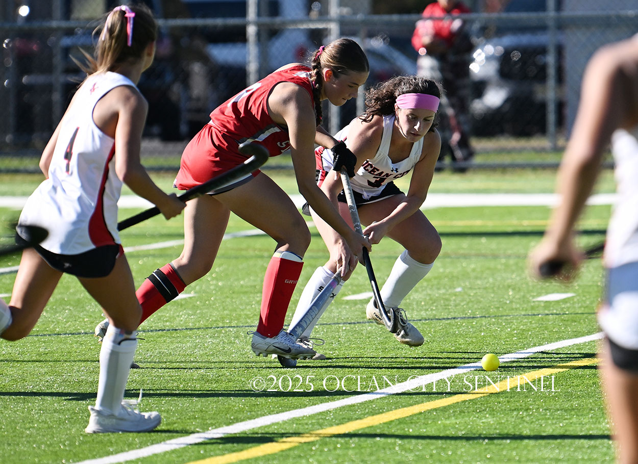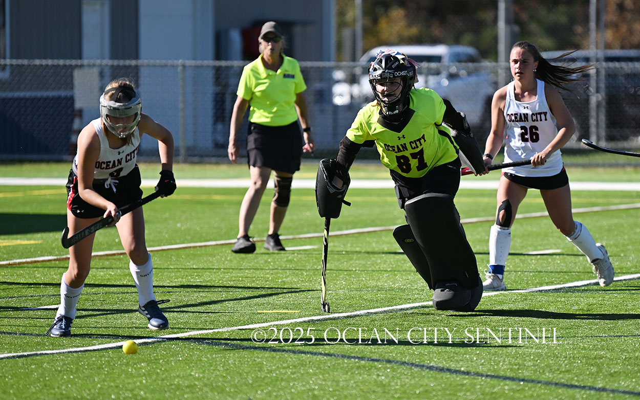 The two teams were tied 1-1 until near the end of the first half after St. Joe’s Stella Devlin scored and Ocean City’s Casey Adamson tied things up. With time running out in the half, Nina Aponte, who provided the assist on Devlin’s score, made it 2-1 off a corner play.