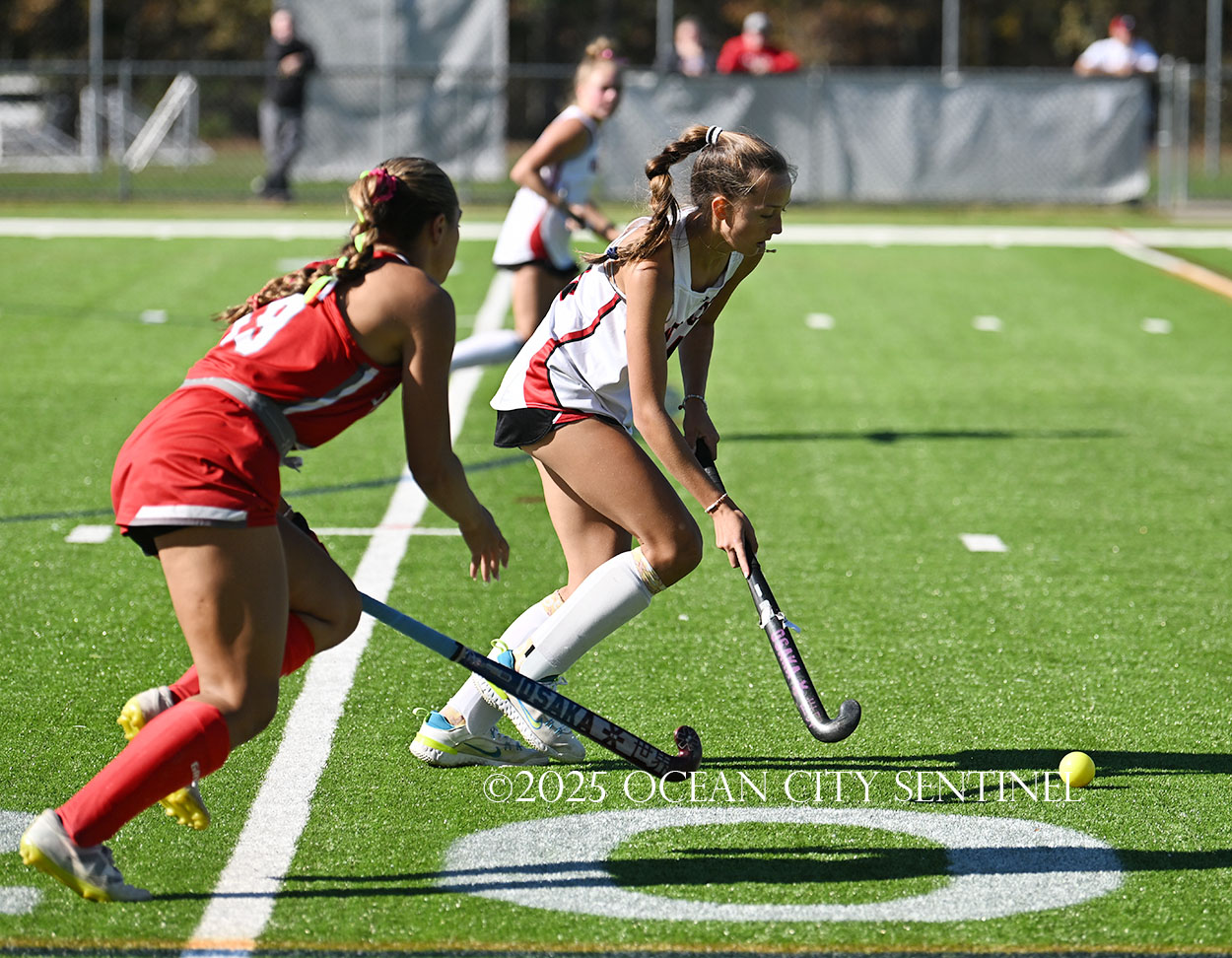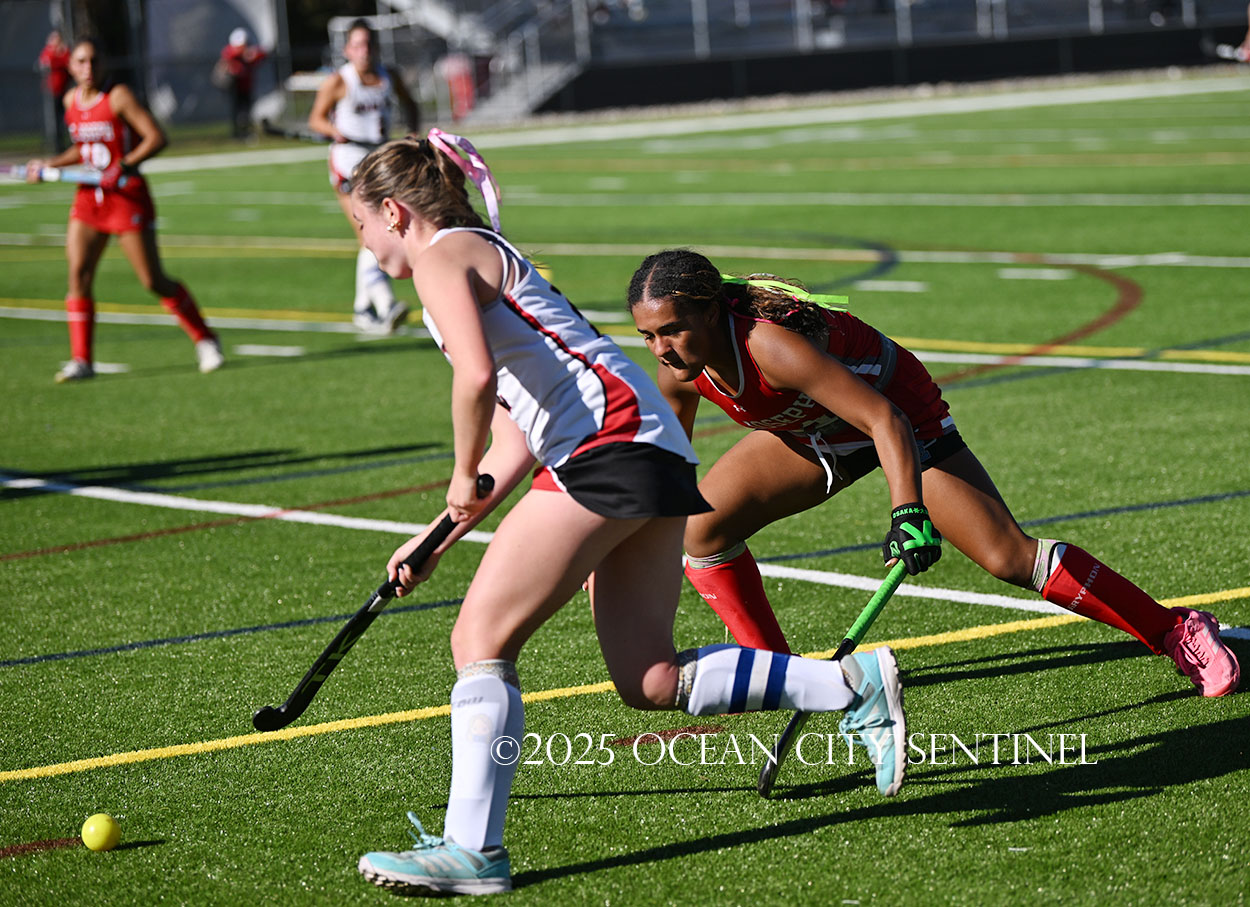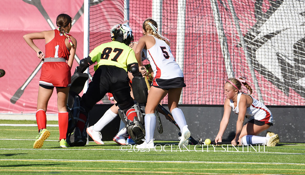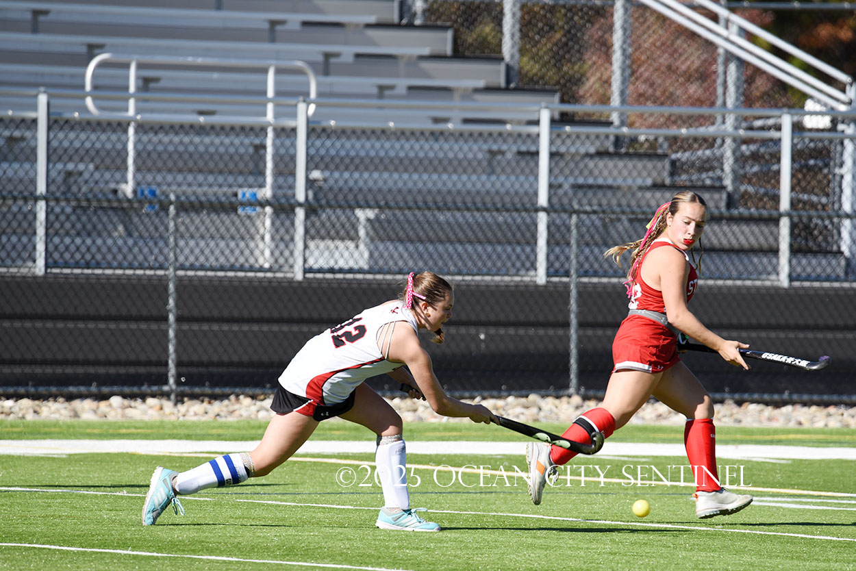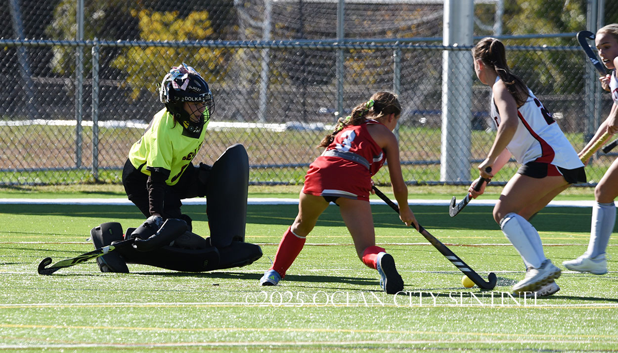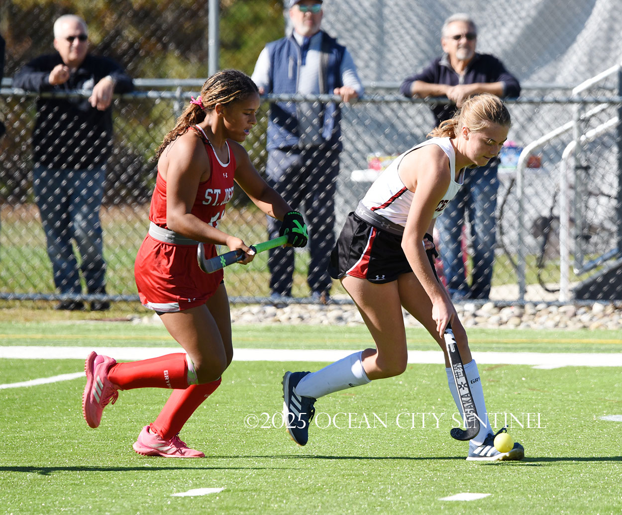 The two teams were tied 1-1 until near the end of the first half after St. Joe’s Stella Devlin scored and Ocean City’s Casey Adamson tied things up. With time running out in the half, Nina Aponte, who provided the assist on Devlin’s score, made it 2-1 off a corner play.