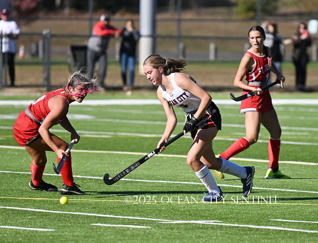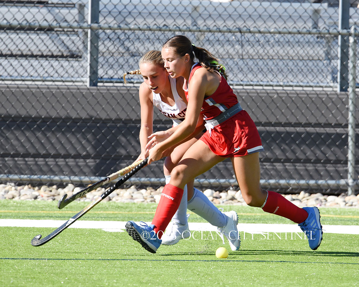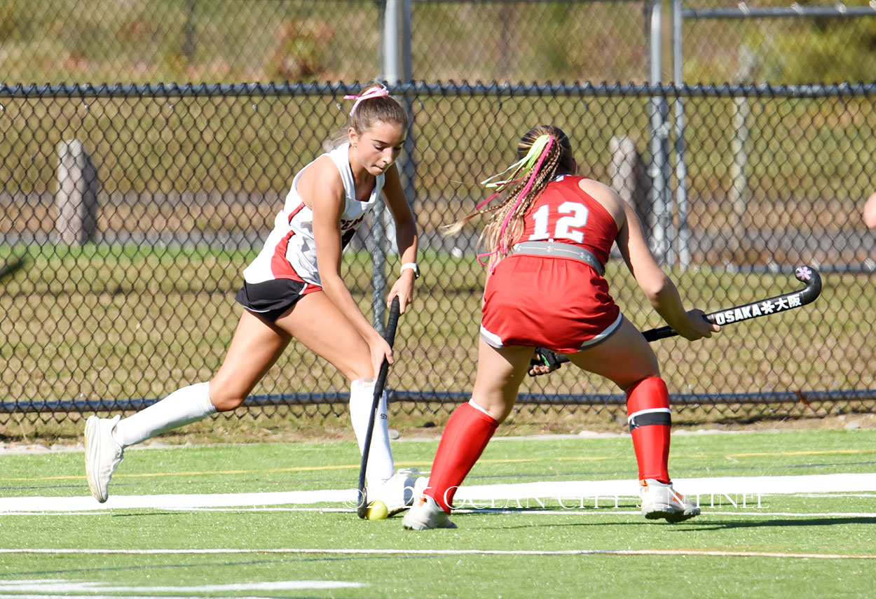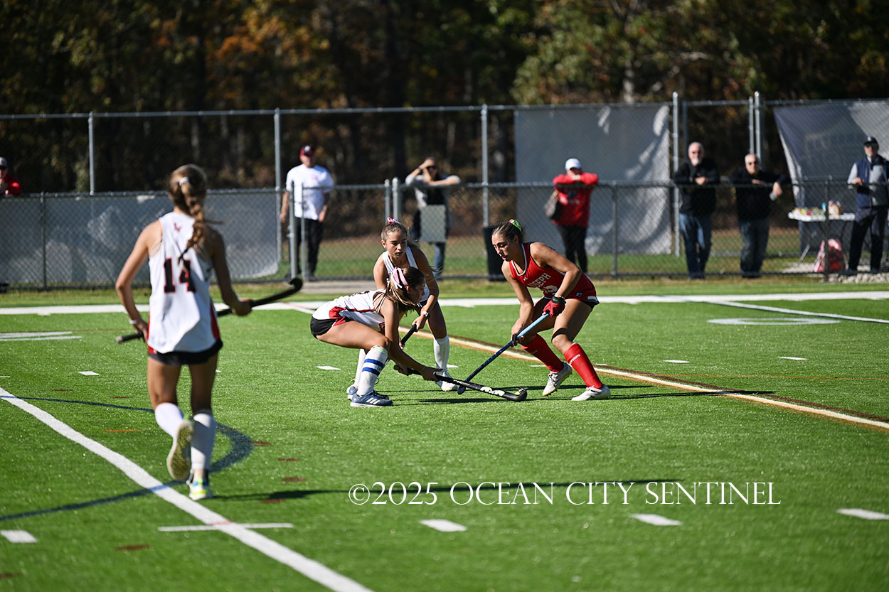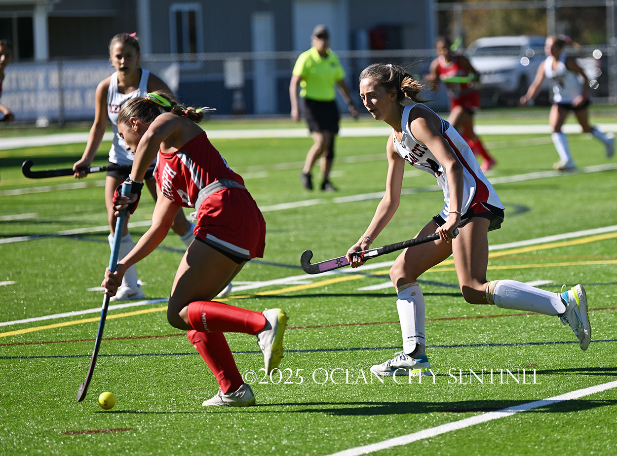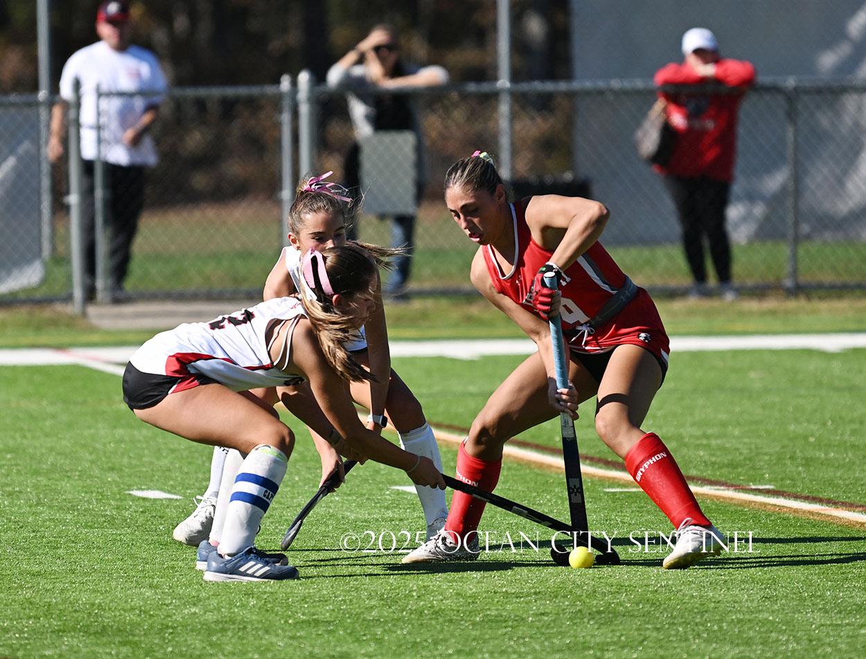 The two teams were tied 1-1 until near the end of the first half after St. Joe’s Stella Devlin scored and Ocean City’s Casey Adamson tied things up. With time running out in the half, Nina Aponte, who provided the assist on Devlin’s score, made it 2-1 off a corner play.