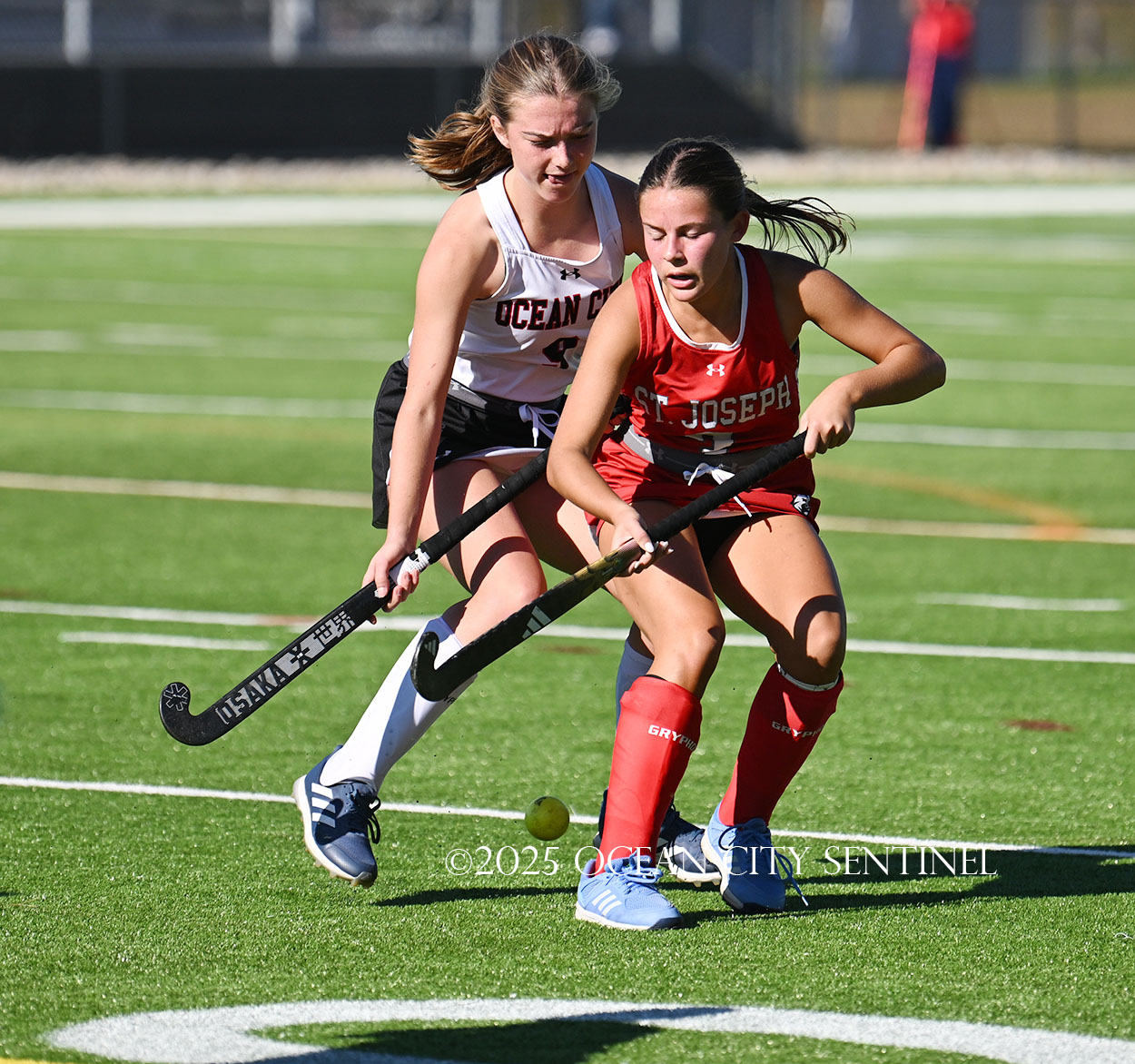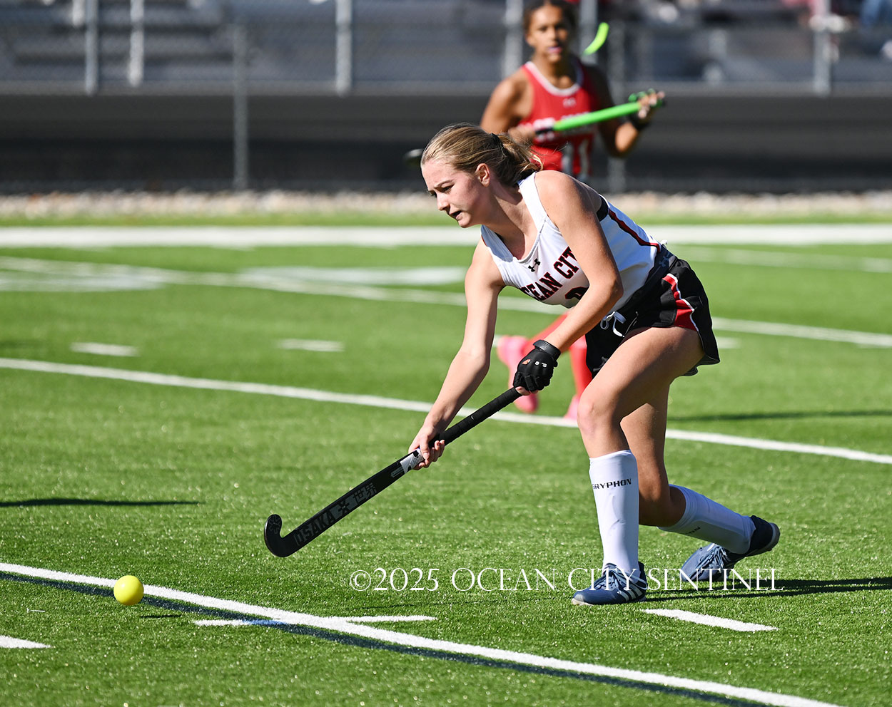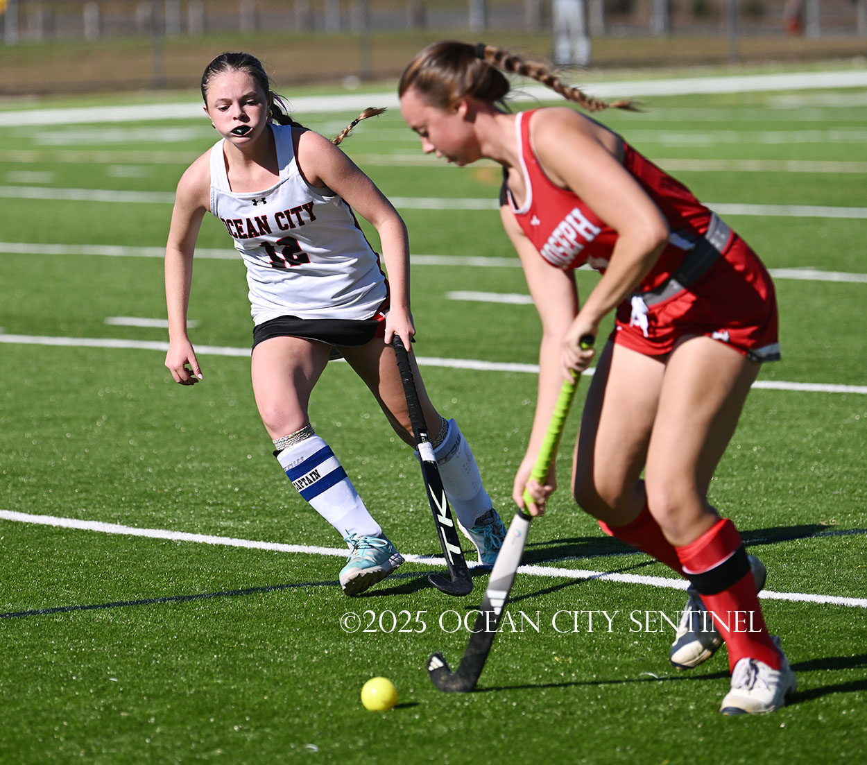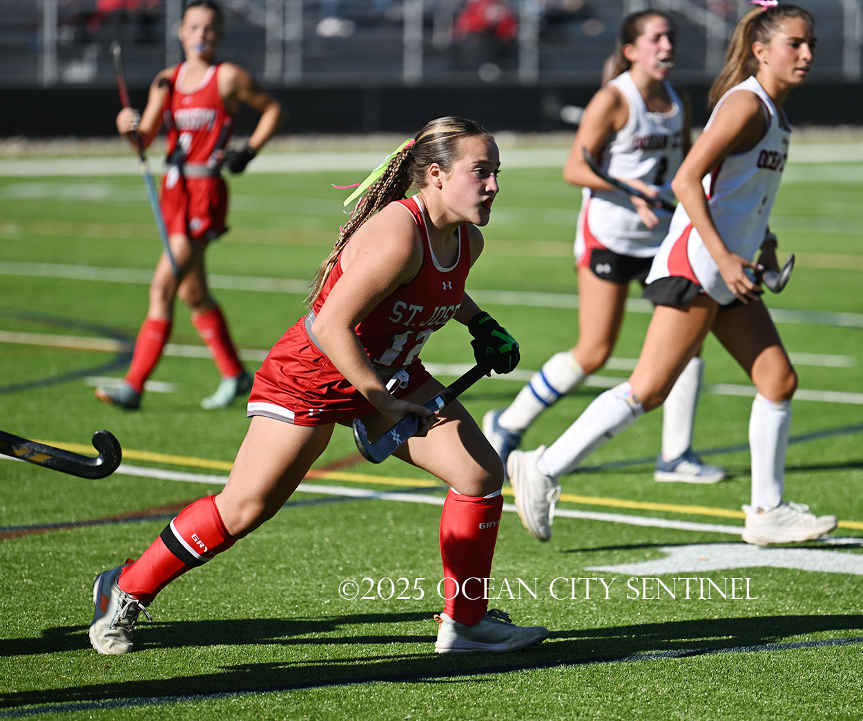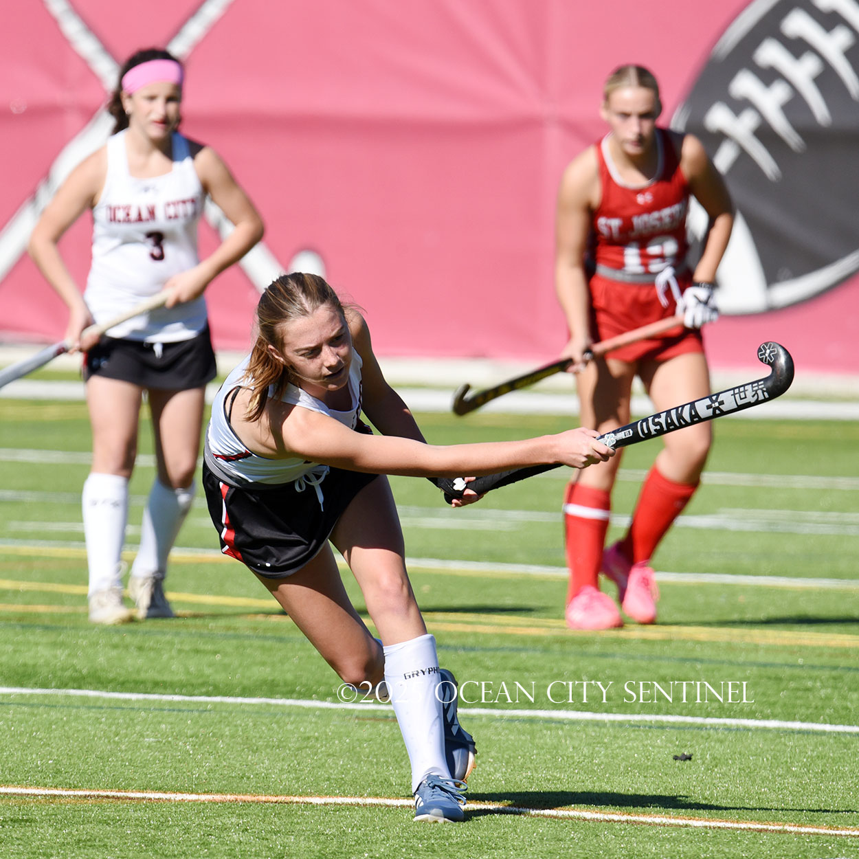 The two teams were tied 1-1 until near the end of the first half after St. Joe’s Stella Devlin scored and Ocean City’s Casey Adamson tied things up. With time running out in the half, Nina Aponte, who provided the assist on Devlin’s score, made it 2-1 off a corner play.
