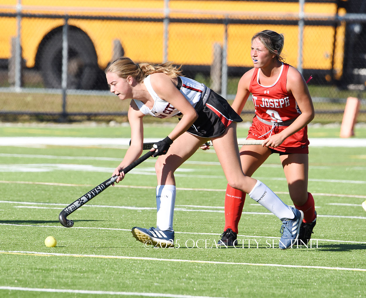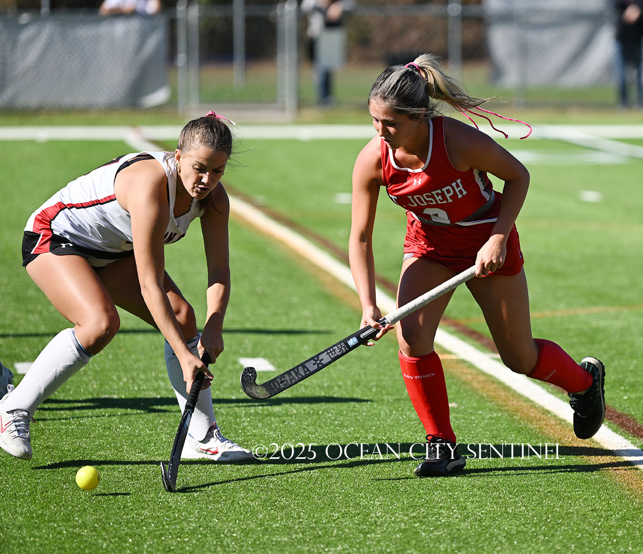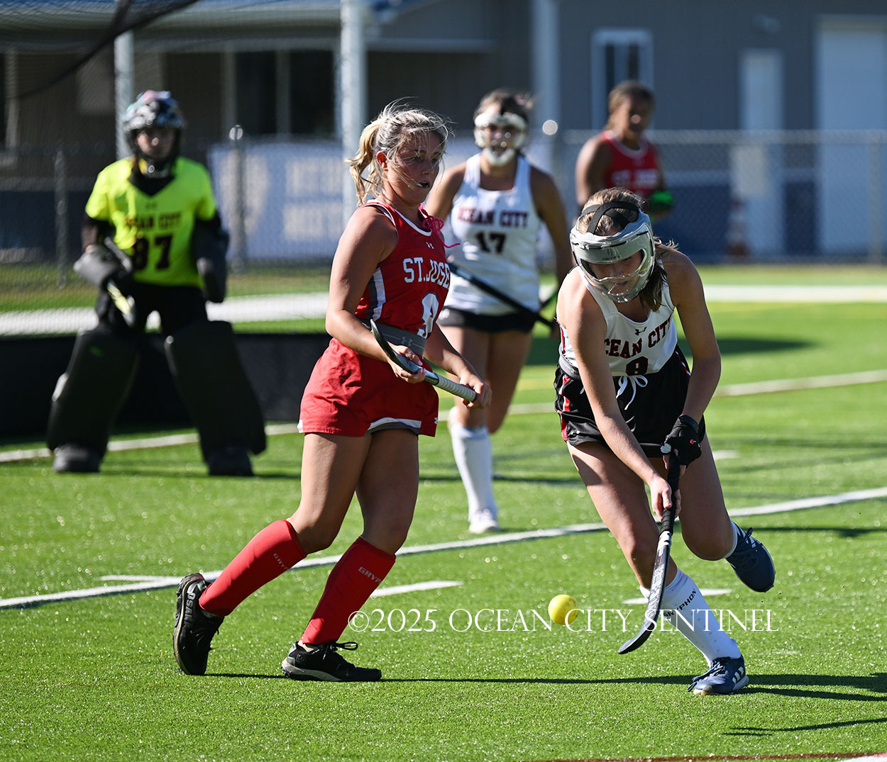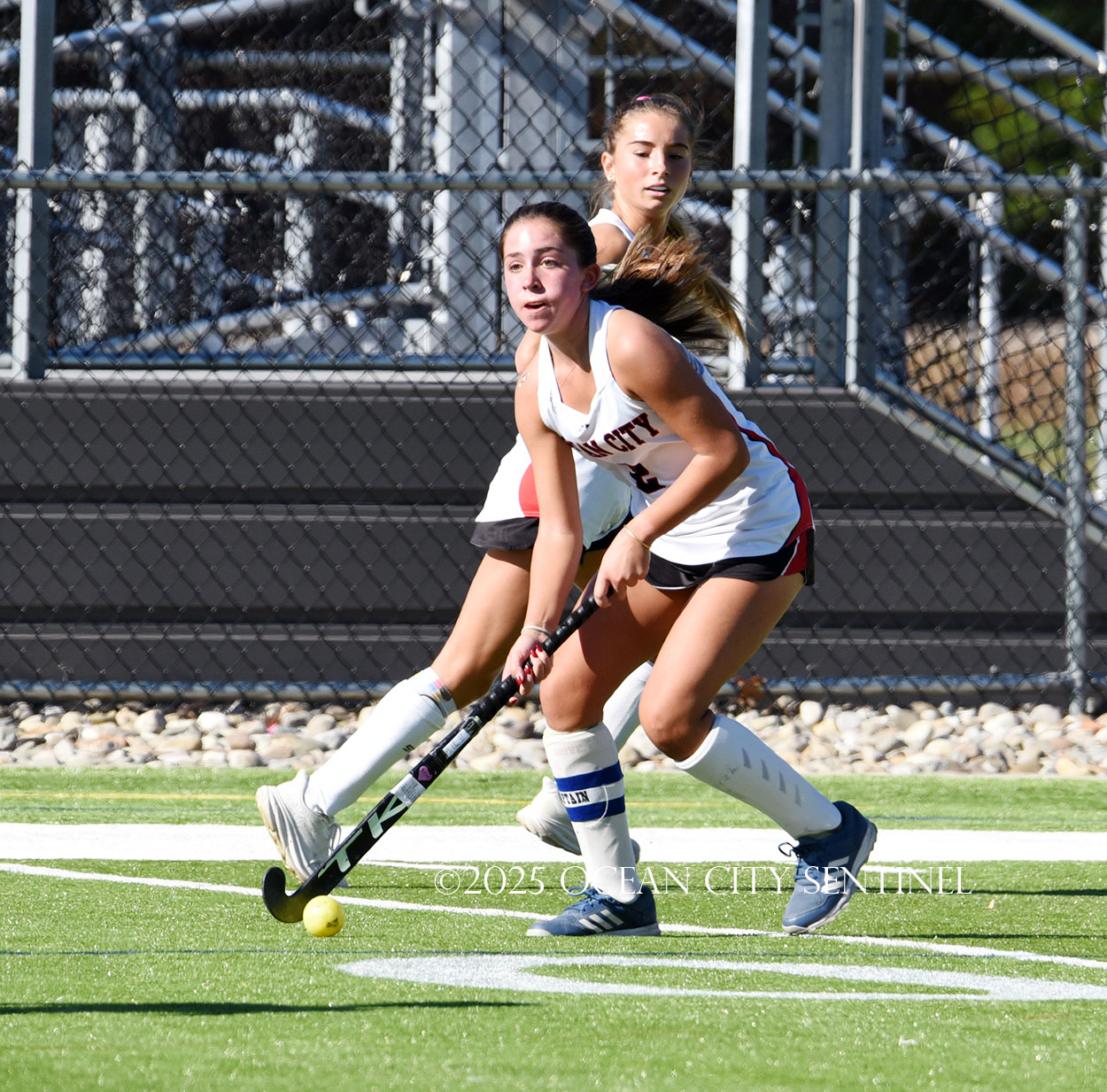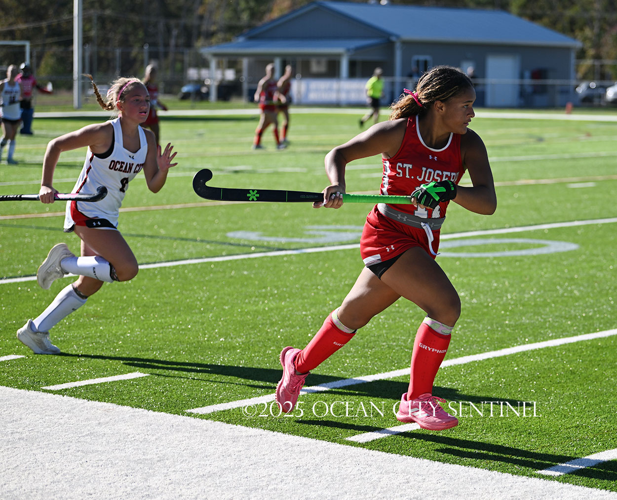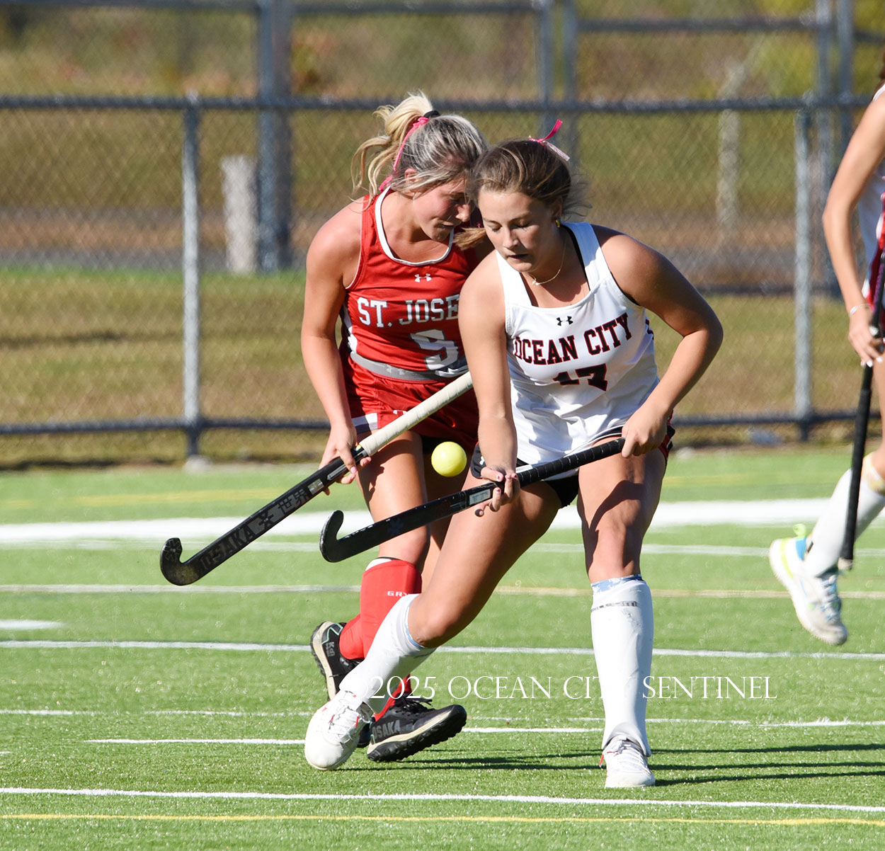 The two teams were tied 1-1 until near the end of the first half after St. Joe’s Stella Devlin scored and Ocean City’s Casey Adamson tied things up. With time running out in the half, Nina Aponte, who provided the assist on Devlin’s score, made it 2-1 off a corner play.