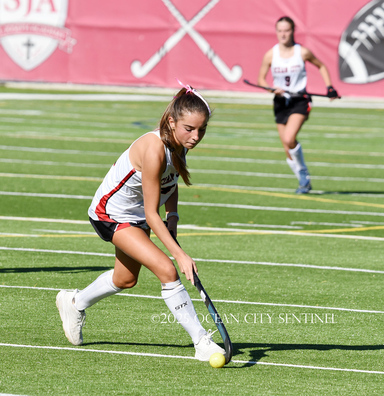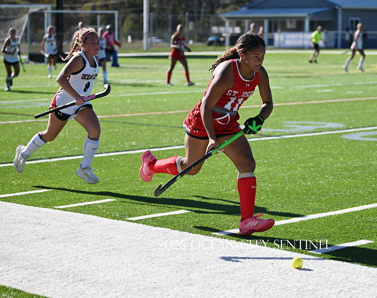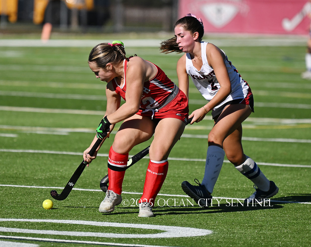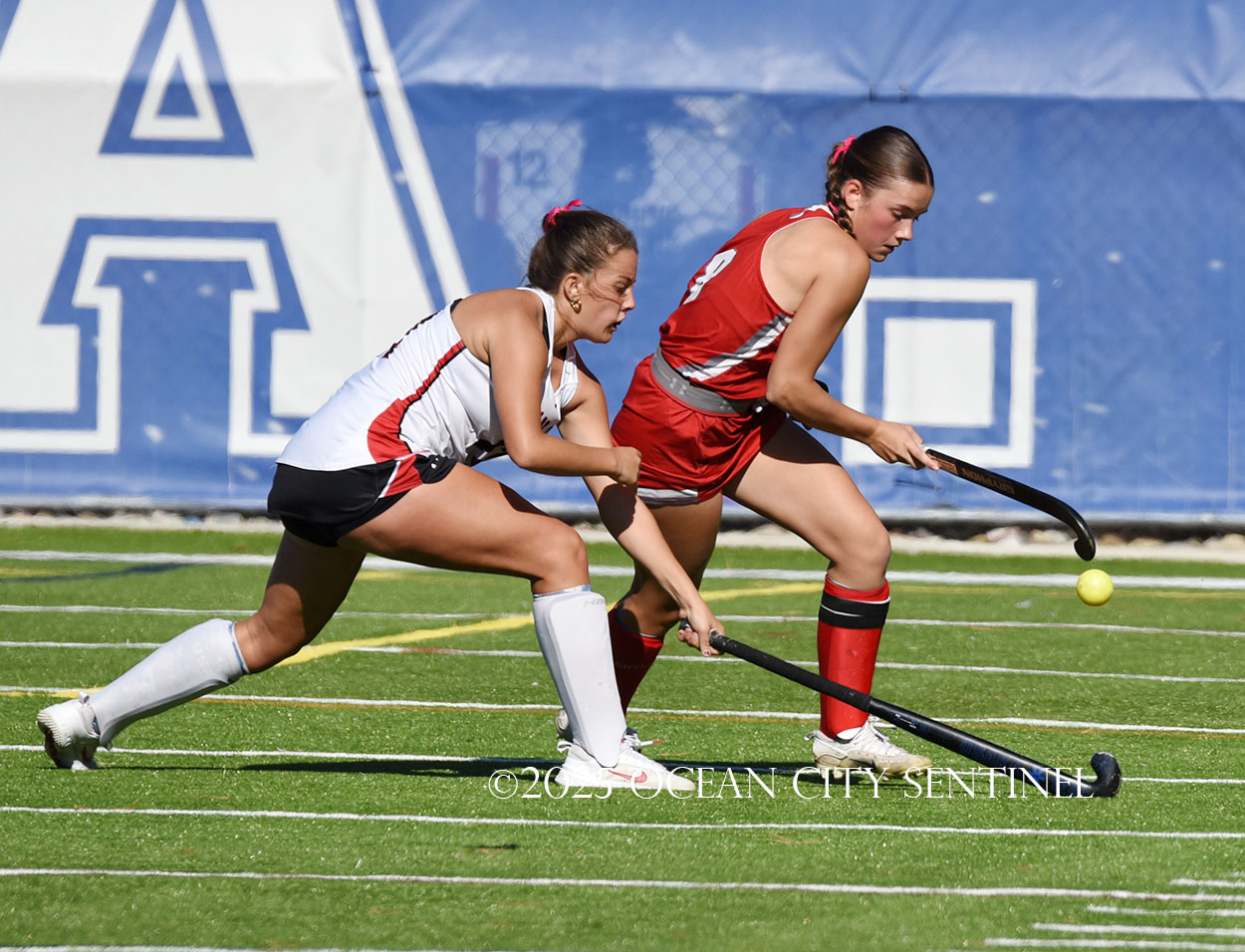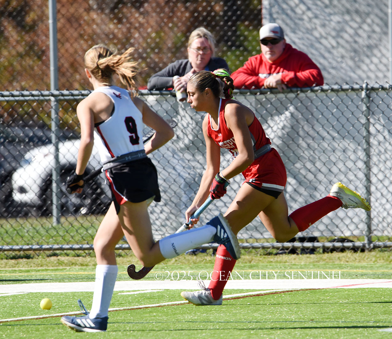 The two teams were tied 1-1 until near the end of the first half after St. Joe’s Stella Devlin scored and Ocean City’s Casey Adamson tied things up. With time running out in the half, Nina Aponte, who provided the assist on Devlin’s score, made it 2-1 off a corner play.