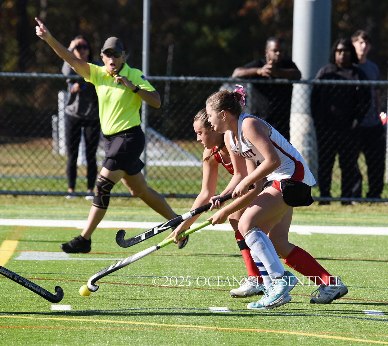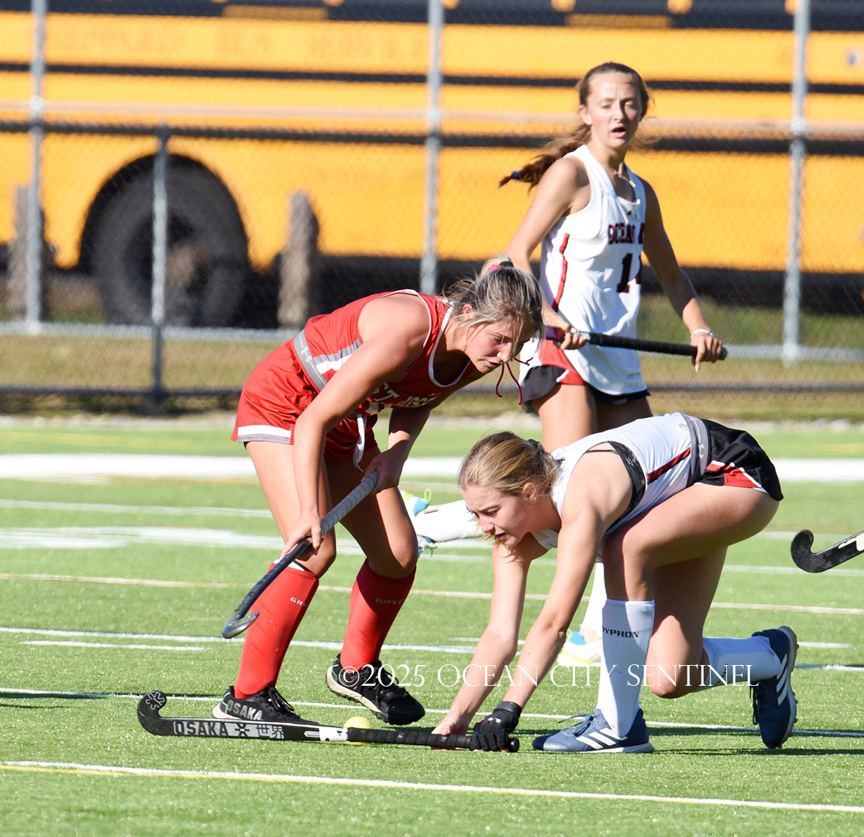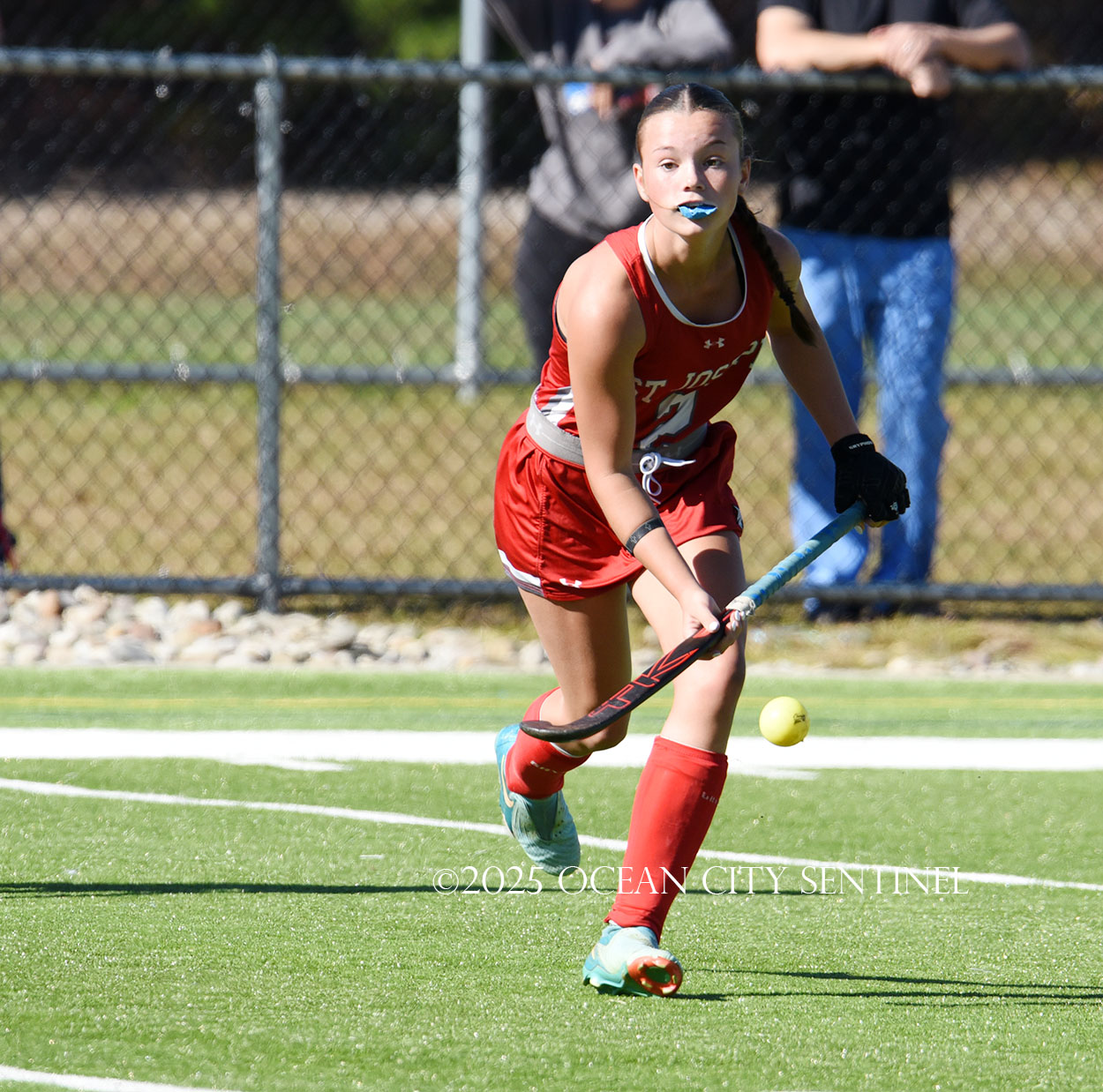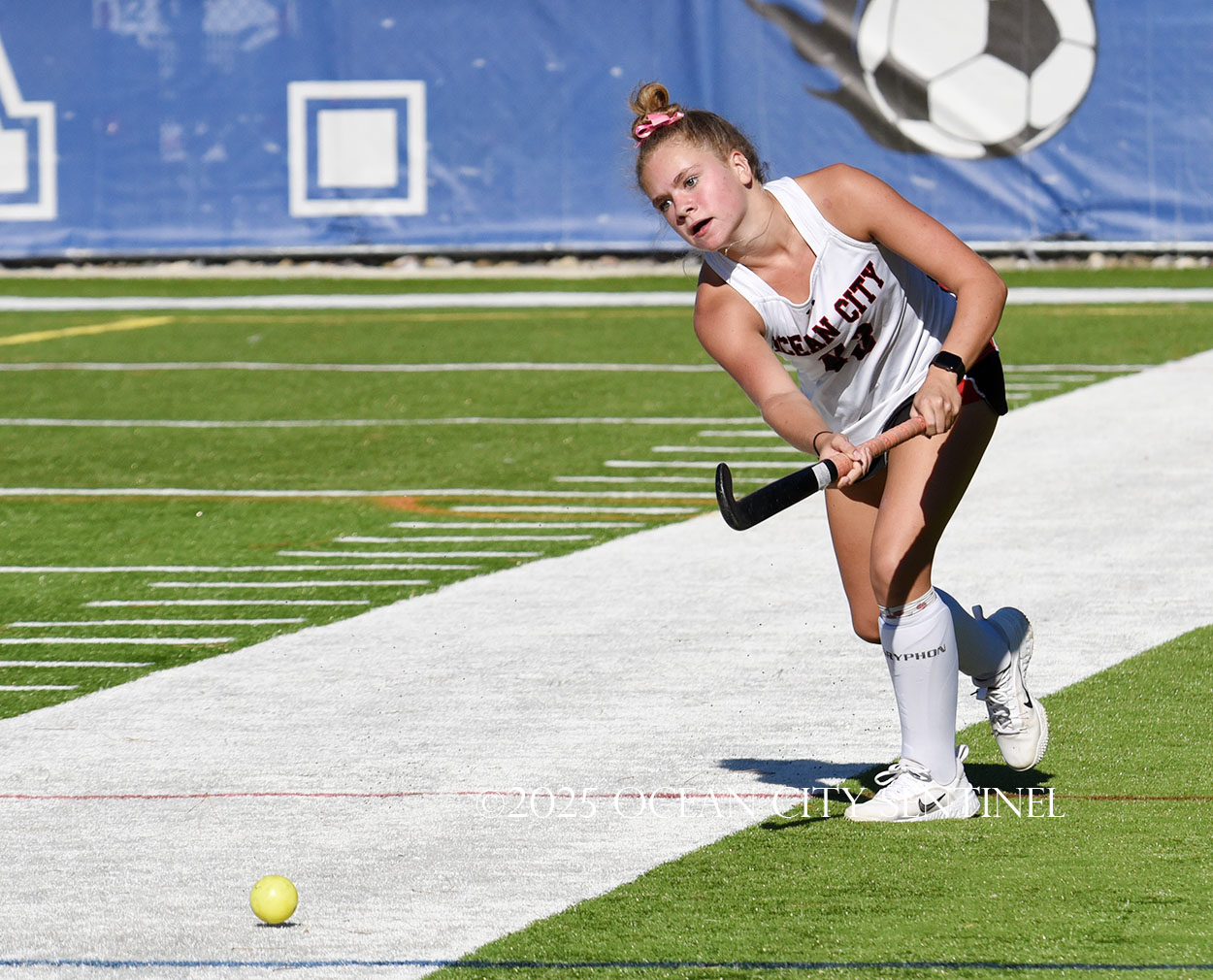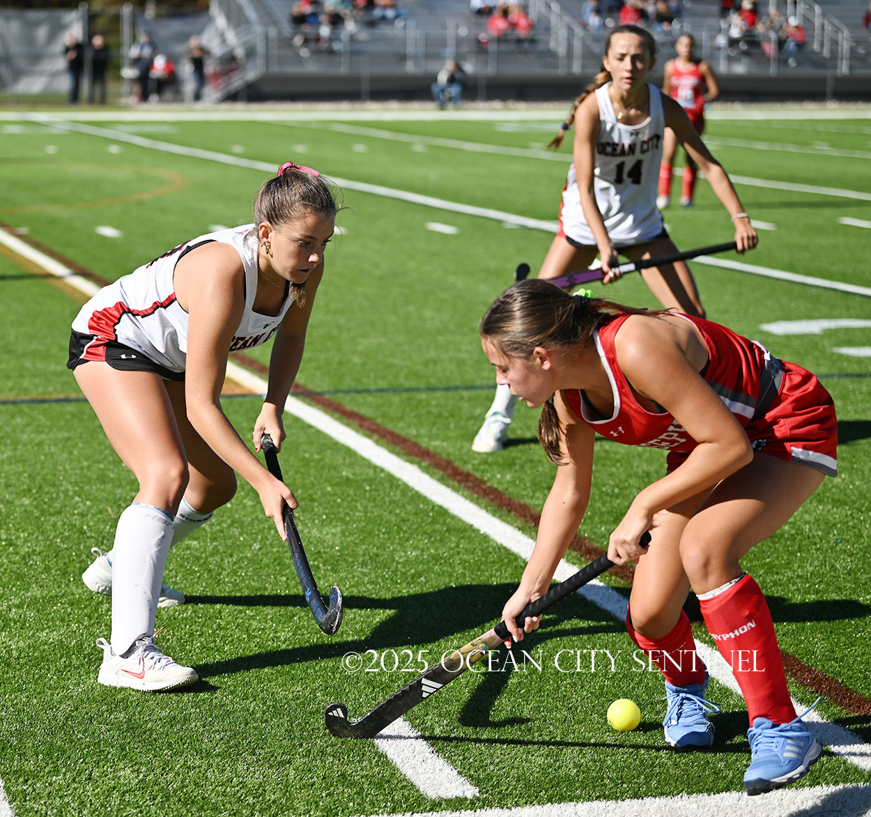 The two teams were tied 1-1 until near the end of the first half after St. Joe’s Stella Devlin scored and Ocean City’s Casey Adamson tied things up. With time running out in the half, Nina Aponte, who provided the assist on Devlin’s score, made it 2-1 off a corner play.