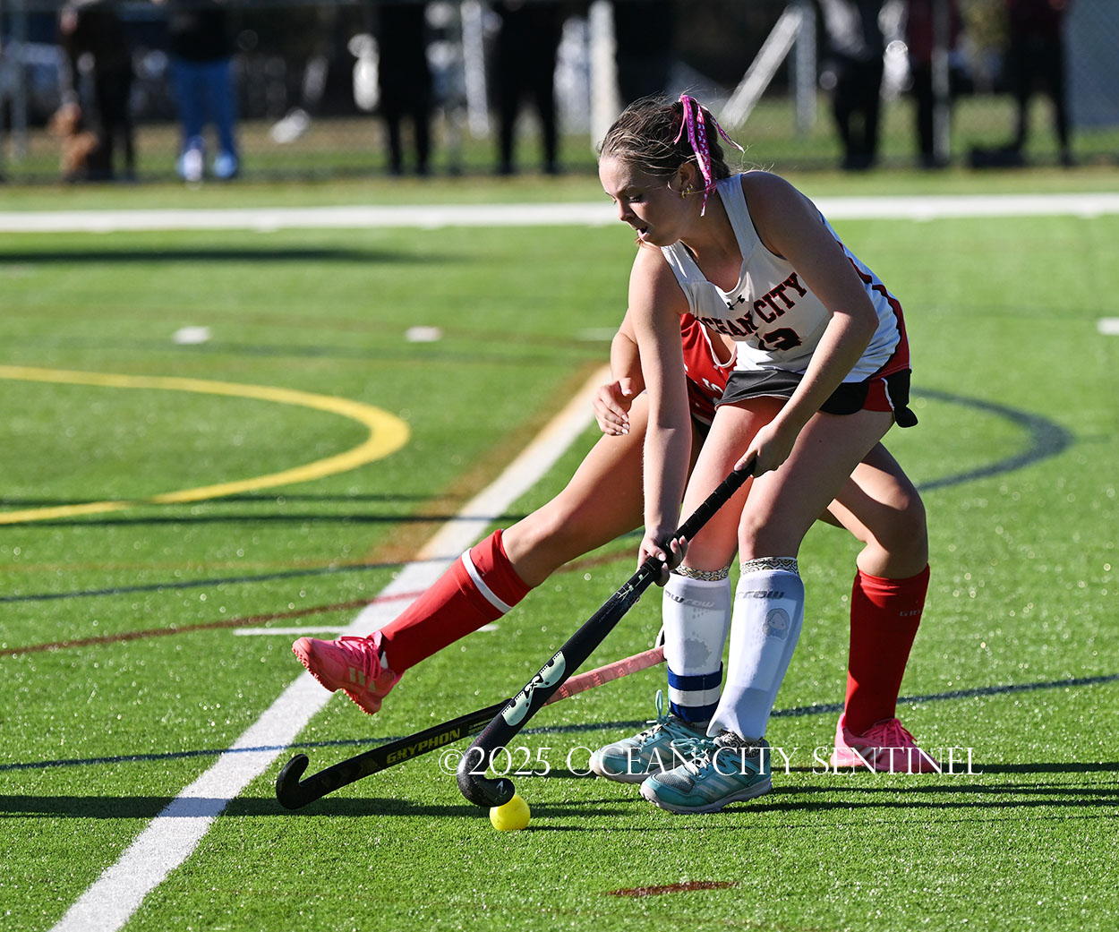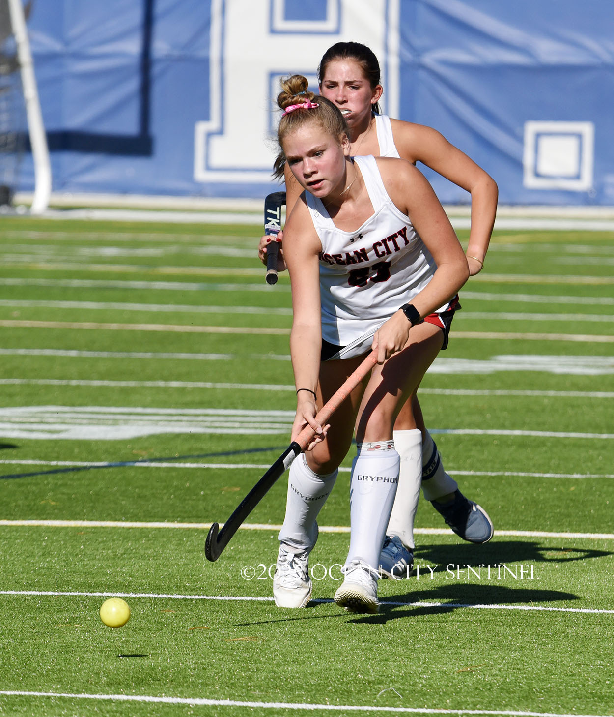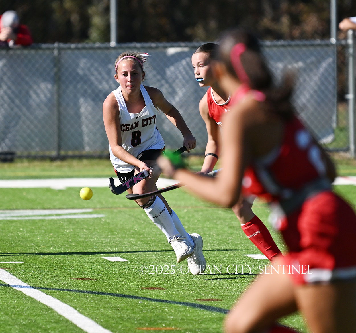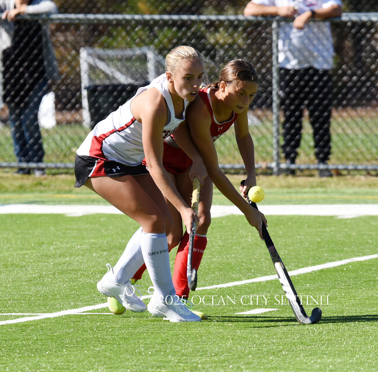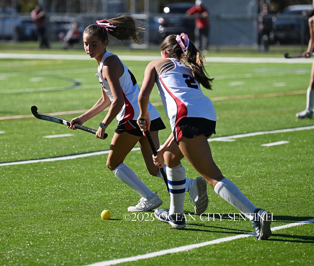 The two teams were tied 1-1 until near the end of the first half after St. Joe’s Stella Devlin scored and Ocean City’s Casey Adamson tied things up. With time running out in the half, Nina Aponte, who provided the assist on Devlin’s score, made it 2-1 off a corner play.
