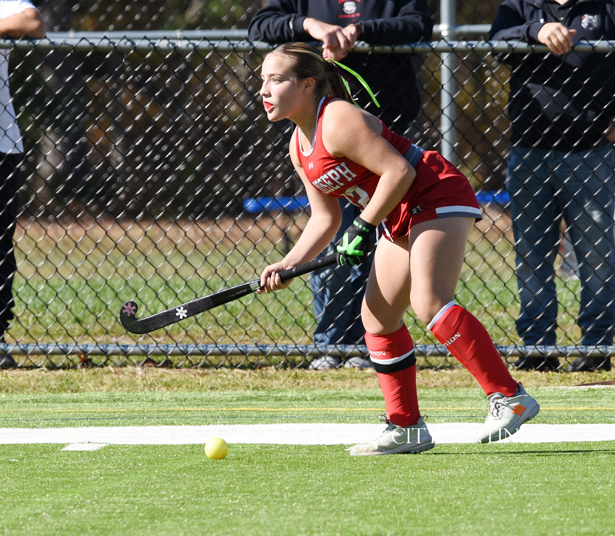 It also appeared the ball crossed the line in the cage during a scramble in front of the St. Joe’s goal, but the referee ruled that it wasn’t a score. On a different loft goal attempt, the ball was dropping toward the cage away from the goalie, but another Wildcat defender swatted it away.