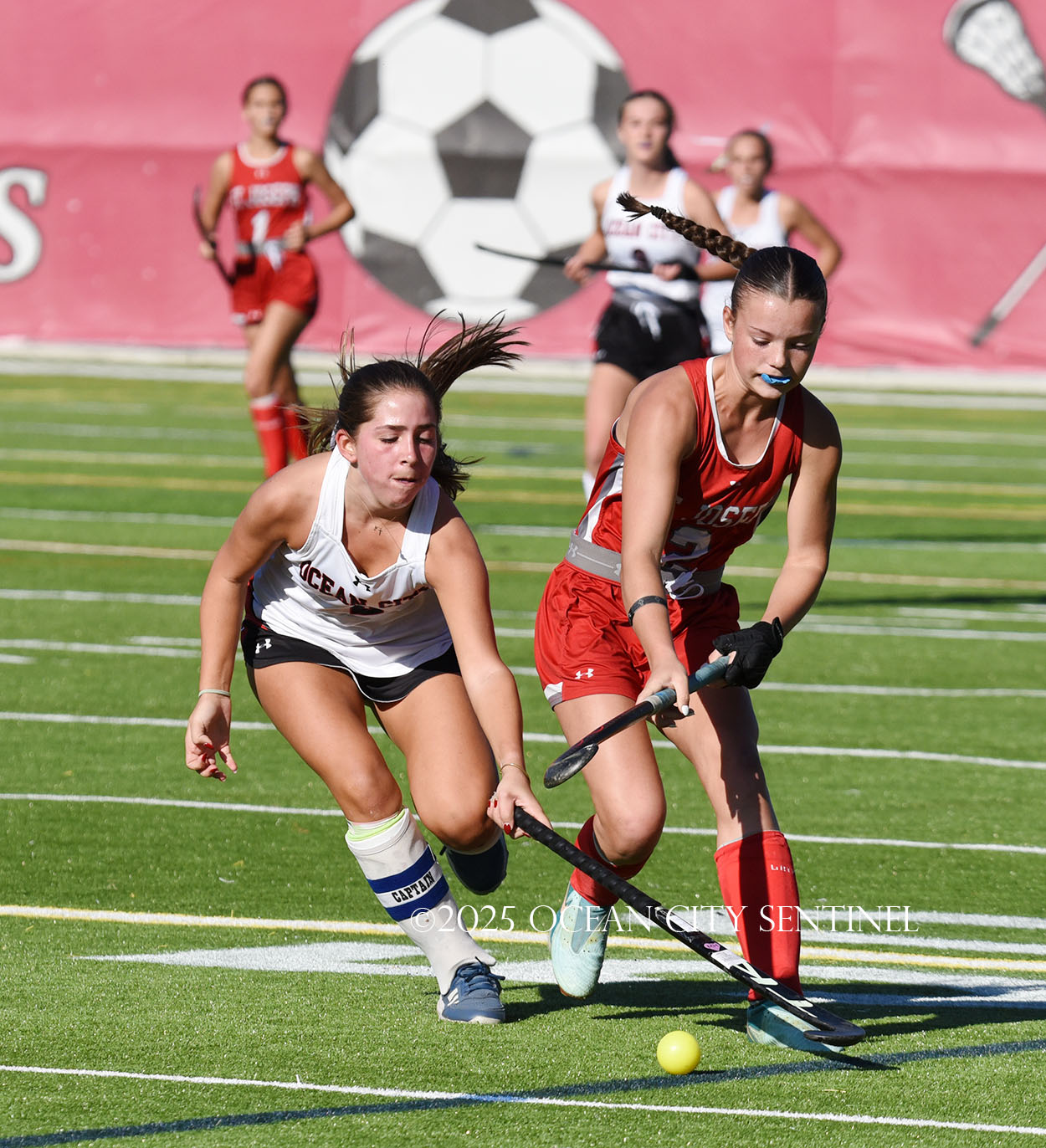 Shayla Malone scored at the 12:53 mark and Aponte got her second goal with the clock at 12:14 after picking off an Ocean City pass.